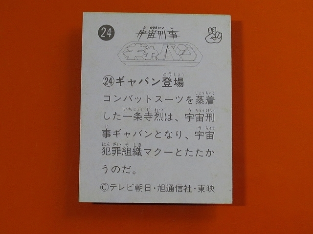 宇宙刑事ギャバン ミニカード 70年代 バラ売り(1枚) ・天田製 ・約 6.5 cm x 5.0 cm (裁断により若干誤差有り) ・1982年頃に駄菓子屋などで発売された商品です。 ・全60種シリーズ(1-60番.カードのみ、アルバム無、キラ無) ・同梱発送可能です。(複数落札の場合、定形.定形外郵便の送料が変わる場合がございます。) 〓参考項目〓 ・原作 八手三郎 ・脚本上原正三 他 ・監督小林義明 他 ・出演者 ・大葉健二 ・叶和貴子 ・西沢利明 ・名代杏子 ・鈴木正幸 他 ・ナレーター政宗一成 ・制作テレビ朝日 ・放送期間1982年3月5日 - 1983年2月25日 ・放送時間金曜 19:30 - 20:00 ・全44話 | ||