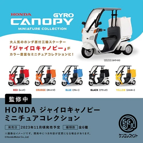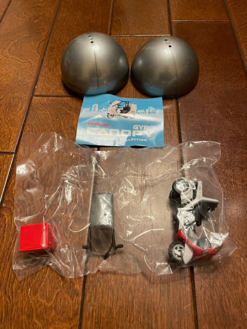 ケンエレファントから発売の『HONDA ジャイロキャノピー 全6種』のうち「レッド」になります。一個500円ガチャだけあって、精巧な仕上になっています。破損しやすそうなパーツがありますのでカプセル入りにて発送します。内袋未開封、リスト付きです。