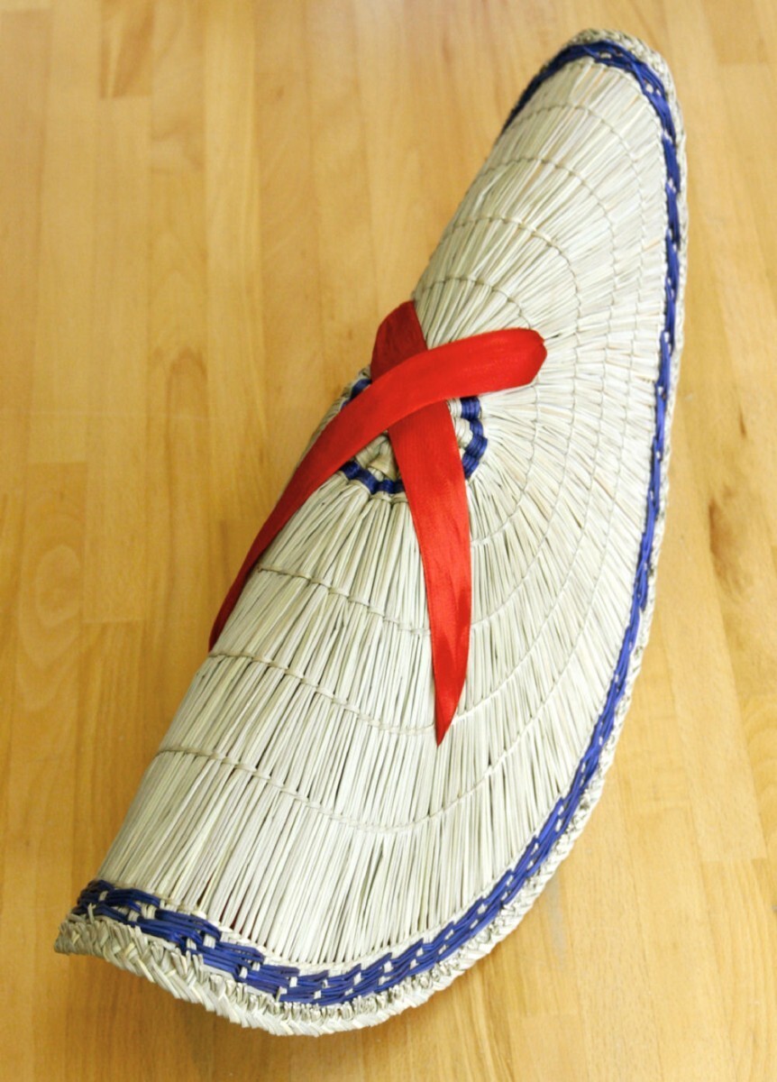 頭頂部周辺と縁(ふち)には、紫に染めた【い草】にてライン入りとなります。