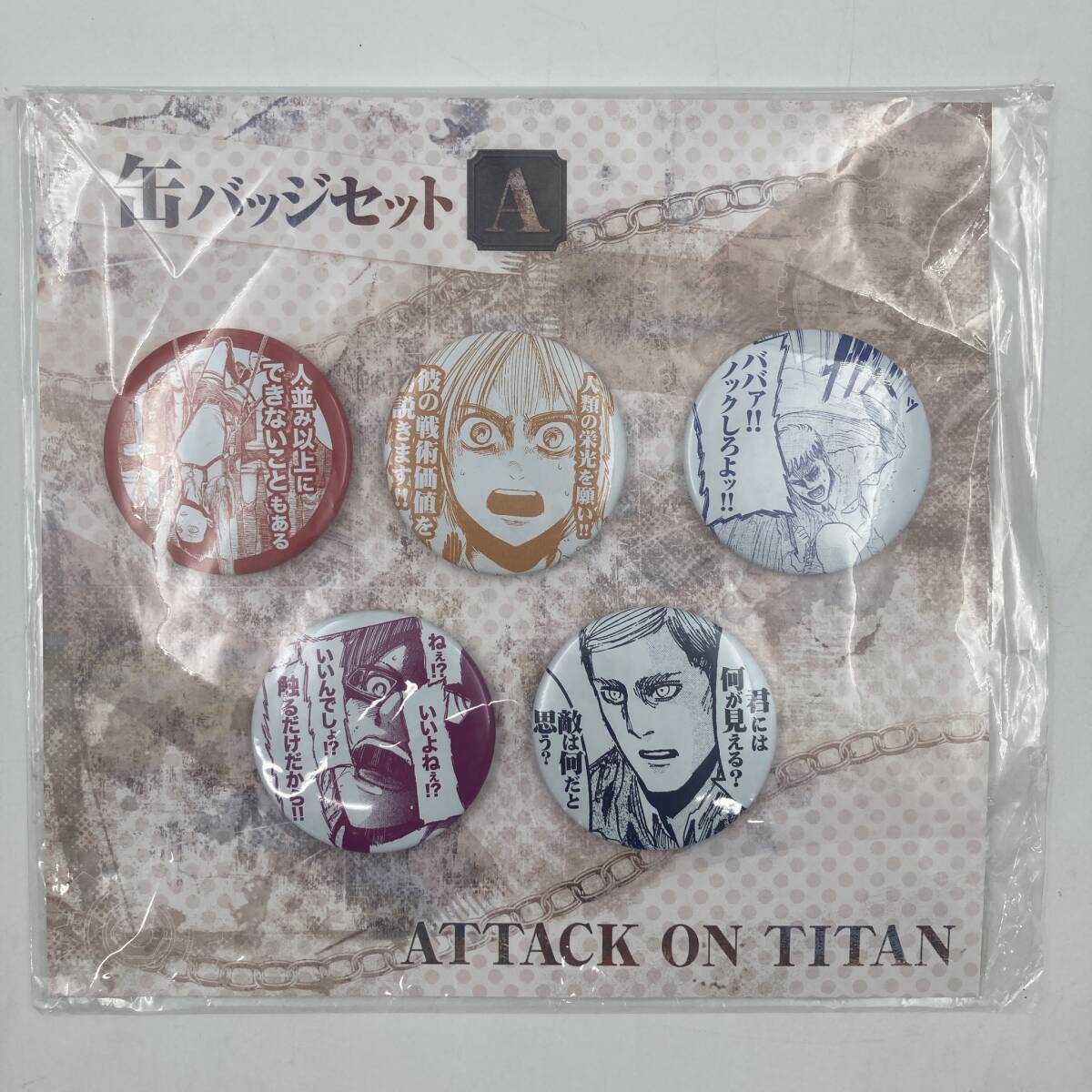 【未開封品】進撃の巨人展 缶バッジセットA エレン アルミン ジャン ハンジ エルヴィン 2014年 ATTACK ON TITAN SG49 |