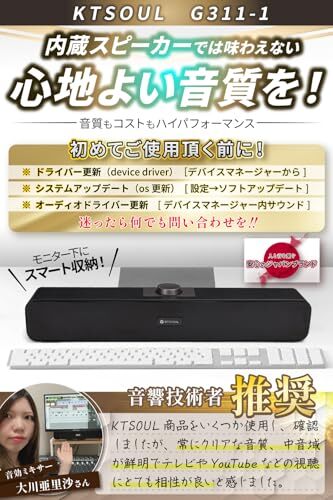 「2024年版G-311-1型」 PCスピーカー ステレオサウンド USBスピーカー USB電源 AUX接続 Wスピーカー W-BASS デスクトップ/ノートパソコン/スマホ/ゲーム機 KTSOUL マットブラック