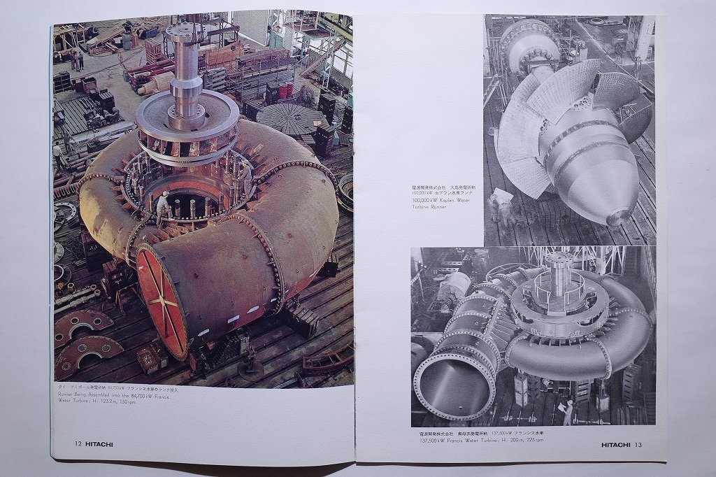 サイズ 縦29.7cm×横20.9cm 27ページ 日立製作所事業所所在地 輸出発電機器一覧図 日立工場の概要 日立工場の沿革 主な記録製品 日立工場の福利厚生施設 発電所納・タービン・装置・水車・電動機 原子力研究所納・その他の機械類の写真多数掲載
