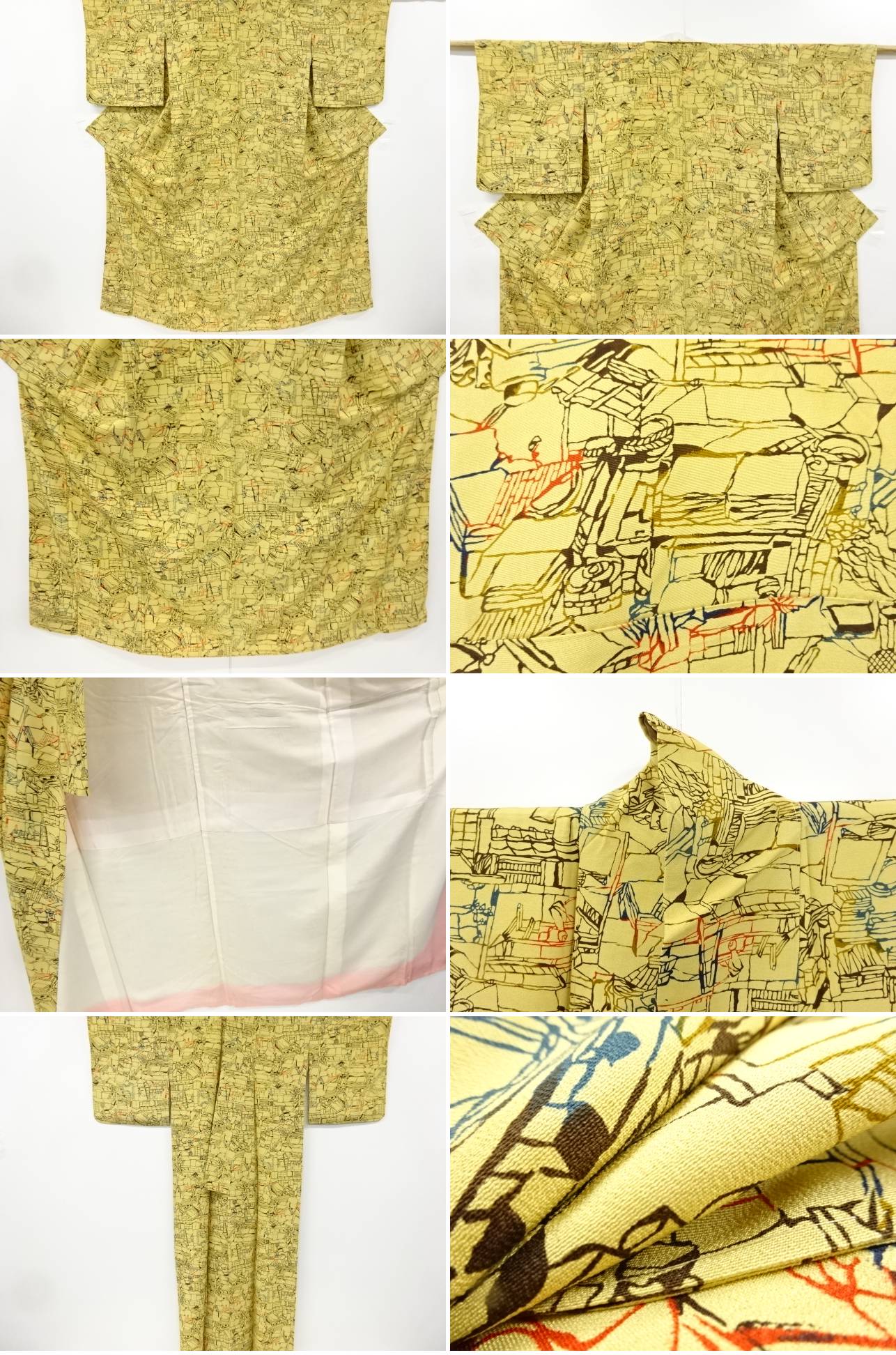 | お着物の状態をできる限りお伝えできるよう努力しておりますが、当店で出品の商品は全てアンティークになります。 一品一品丁寧に検品の上、出品させて頂いておりますが、稀に小さな見落としや、アンティーク特有の経年に伴う汚れや傷のある場合もございますので、アンティーク・中古品にご理解ある方のみのご入札をお願い致します。 寸法に関しましては、一品一品手作業での採寸であり、性質上生地の伸縮性もございますので、若干の誤差はご了承ください。 ごく稀にですが、樟脳やアンティーク特有の匂いがある場合がございます。 匂いに関しては、商品コメントには記載しておりませんので、ご理解の上ご入札下さい。 はぎれ商品につきましては、解き商品が多くなっております。 生地端に縫い糸の残りが多く残った状態での出品となります。 ご理解の上でのご入札と、ご自宅でのお手入れをお願い申し上げます。 | |