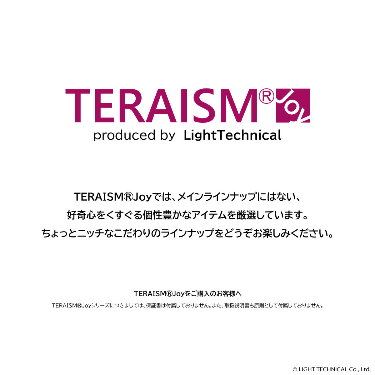 有限会社ライトテクニカルです。 平素より弊社製品をご愛顧いただき、心より感謝申し上げます。 この度、2025年9月15日をもちまして、TERAISM®は設立2周年を迎えます。 これもひとえに皆様の温かいご支援の賜物と、スタッフ一同心より感謝申し上げます。 これからもお客様にご満足いただける製品を提供できるよう、 スタッフ一同邁進してまいりますので、今後ともご愛顧賜りますようお願い申し上げます。 ◆共通注意事項 【お問い合わせについて】 お問い合わせや取引メッセージへのご返信は、 弊社の営業時間内(定休日:毎週水曜日を除く平日 9:00~16:30)に順次対応させていただきます。 営業時間外のお問い合わせにつきましては、 翌営業日以降のご返信となりますので、あらかじめご了承ください。 【複数の商品をご購入のお客様へ】 のシステム上、匿名配送の商品を複数ご購入いただいた場合、 弊社ではお客様が同一人物であるかどうかの確認ができません。 そのため、「まとめて取引」をご希望のお客様は、 必ずお支払い完了前に商品ページにて「まとめて取引」の手続きを行ってください。 お手数をおかけしますが、ご協力をお願いいたします。 【商品のデザイン変更について】 製品の性能や機能に影響のない範囲で、細部のデザインを予告なく変更する場合がございます。 製造の際には、お客様に不便が生じないよう細心の注意を払っております。 何卒ご理解いただけますようお願い申し上げます。 【保証について】 セール対象商品、または「Bグレード品」として出品している商品につきましては、 保証の対象外となります。 商品説明欄をよくご確認の上、ご購入ください。 ◆製品の取り付けに関するご留意事項 【取り付け後のECU学習データについて】 製品取り付け後に、ECUの学習データ制御により、 TERAISM製品本来の性能が発揮されない、または取り付け前と変化を感じられない場合は、 車のマイナス端子を2~3秒外してECU学習データをリセットすることで改善する場合があります。 ご自身で作業される際は、カーナビのデータ保存やセキュリティの関係上、 必ずバッテリーバックアップユニットを接続した上で作業を行ってください。 また、作業に不安がある場合は、お近くの各ディーラーや専門業者にご相談いただくことを強くお勧めいたします。 【レーザー刻印について】 TERAISM製品には、レーザー刻印による文字やロゴが施されているものが多数ございます。 それらのレーザー刻印は、素材表面に微細な熱影響を与える特性があるため、 製造工程上、文字部分に不均一な凹凸やごく小さな黒点が生じる場合があります。 これらは、レーザー加工の特性上生じるもので、製品の機能や性能に影響はございません。 あらかじめご了承ください。 |