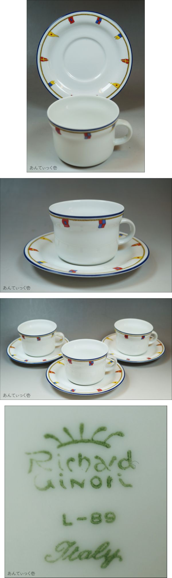 | 商品説明 | ☆ RichardGinori【クリッパー】カップ&ソーサー 3setの出品で御座います!☆ ☆カップ 高さ6.2 cm 口径 8.3cm ☆カップ 高さ 1.8cm 15cm ◆コレクター様よりお譲り頂きました! 多少古いお品物とご理解頂いた上での入札をお願いします。 目立った傷・汚れは御座いません! 経年の擦れ/汚れ等はご了承お願いいたします。 小さな傷など全て説明しきれない場合もございますので 画像にて判断ください。 PC環境により色など実物と多少誤差が生じる場合があることを予めご了承ください。 神経質な方のご入札はお控えください。 撮影用の皿立て等は付属致しません。 (写真参照でご判断お願いいたします) ◆落札後、24時間以内にご連絡いただけない方のご入札お断りいたします。 ◆落札後 5日以内のご入金をお願いいたします。 ■支払方法 かんたん決済のみで御座います。ご了承お願い致します。 ■発送はゆうパックのみで御座います! ■領収証の発行は致しておりません! ◆商品到着後 お受け取りのご連絡を必ずお願いいたします! 商品を受け取られましたら迅速に商品受取完了の御連絡を御願い致します。 ■ 発送完了時に評価をいたしますので 不要の方は事前にお知らせください! ☆ゆうパック : 80サイズで配送いたします。 ゆうパック料金は下欄に記載いたしております。 .発送はゆうパックのみで御座います。 【【【重要】】】 ★【真作】 真作であると保証できる作品を 真作と表記いたします!!! リトグラフ/木版画などの版画作品なども対象となります。 ★【模写】 真贋の判断が出来ない場合 模写と表記致します! ☆保証期間内に商品が真作でないと判断された場合は 落札金額/送料/鑑定代金等をご返金いたします。 ☆返金請求をされる場合 その証明として下記の書類等が必要となります。 ※贋作と証明された該当商品 ※所定鑑定機関または公式鑑定人が発行した書類(原本必須/コピー不可) 公的鑑定機関発行の鑑定(証明)書 作家自身の署名捺印のある書面 等 ■ 評価が5以下の方 新規ご入札の方は質問欄で購入のご意思をご連絡お願い致します! (ご連絡なき時は削除させて頂く場合もございます。) ■ 画像でのご判断いただきご納得いただける方のみ入札ご参加願います。 ◆ 梱包材一部・新聞紙等をリサイクル使用しますので ご了承お願いいたします。 ◆ 開封後に商品に問題が御座いましたら 評価を頂く前にご連絡お願いいたします。 最善の解決努力をいたします。 ■ヤフーオークション新規の方は基本的にお断りいたしておりますがご 希望の方は質問欄でご意思をお伝えください!!!! ■ 当方千葉県市川市で骨董/アンティーク店経営いたしております。 お近くの方は店頭でご覧下さい。 また店頭でのお渡しも可能ですのでご相談ください。 他にも多数出品しております。 : 自己採寸ですので多少の誤差はご了承ください。 : 神経質な方評価の悪いが多い方のご入札ご遠慮ください。 :詳細は質問でお願いいたします。 :写真をよくご覧になってご入札をお願い致します。 :店舗でも販売いたしておりますので入札後に出品取り消し させて頂く場合もございます。ご了承お願いいたします。 注意事項 ・ご落札後、24時間以内にご連絡いただけない方のご入札お断りいたします。 ・5日以内のご入金をお願いいたします。 ・マイナス評価、キャンセル歴の多い方はご入札を取り消させて 頂く場合もありますのでご了承願います。 ・店頭でも販売致しておりますので売り切れ等で入札があっても 取り消す場合がございます。 ・同梱発送に付きましては混乱等を回避する為、同日の落札分のみとなっております。 ・ご不明な点等ございましたら、入札前に質問欄より、お問合せ下さい。 (終了直前、時間外等々でご質問の対応が出来ない場合が御座います) 千葉県市川市市川2-6-14 TEL: 047-325-1603 |