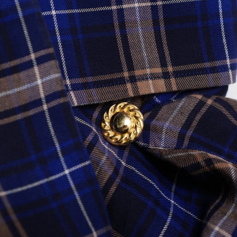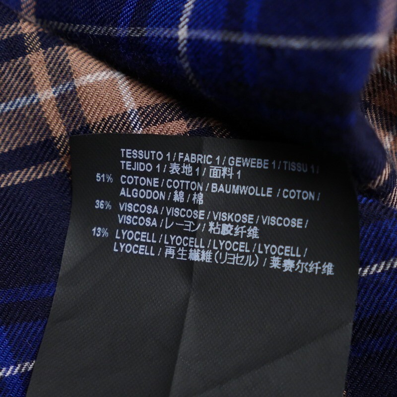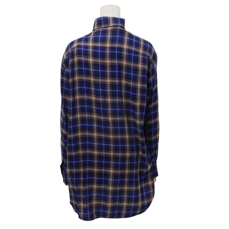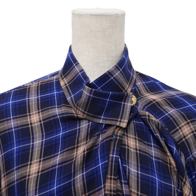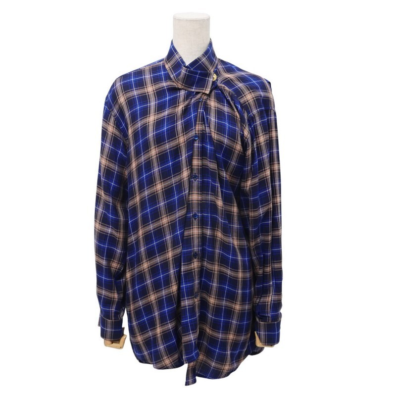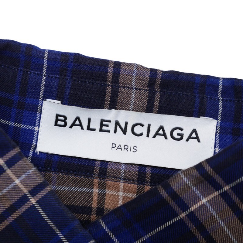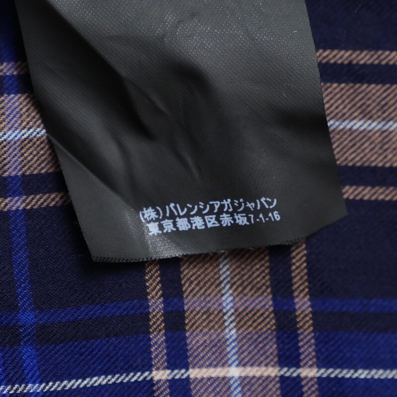 | MI3207▼イタリア製*バレンシアガ BALENCIAGA*アシンメトリー チェック柄 スタンドカラー シャツ サイズ34 ネイビー×ベージュ系 | |||
