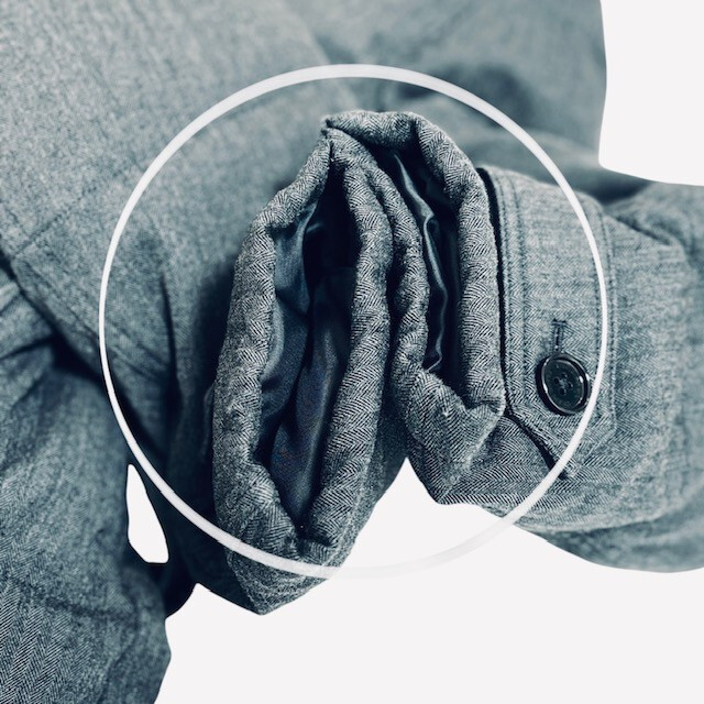 素材/本体:羊毛73%・ポリエステル17%・レーヨン10%/中わた:ダウン95%・フェザー5%/ファー:毛皮(ラビット)/レザー部分:牛革/裏地:キュプラ・ポリエステル
