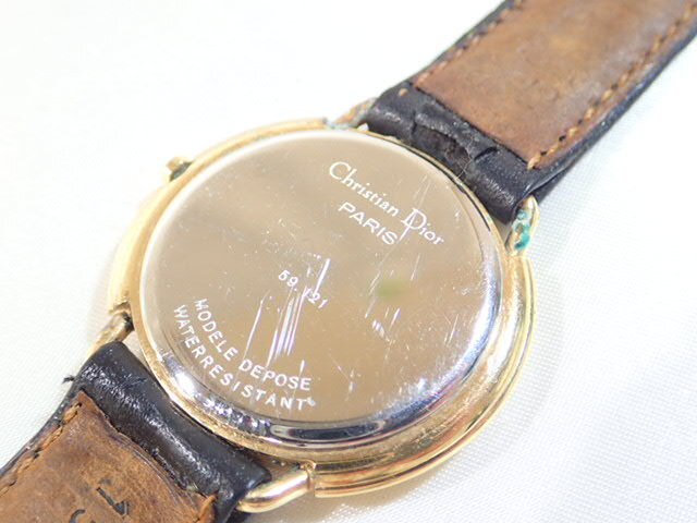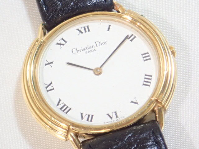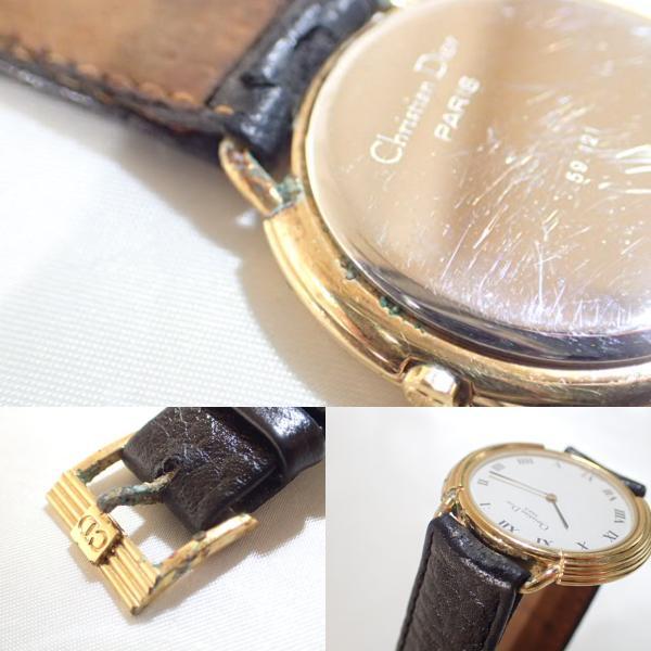 | 11137[i]稼働品 Christian Dior クリスチャン ディオール 59.121 クォーツ アナログ ゴールド系 ローマン 2針 メンズ レディース 腕時計 純正ベルト | ||