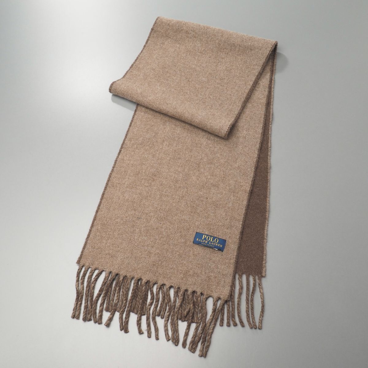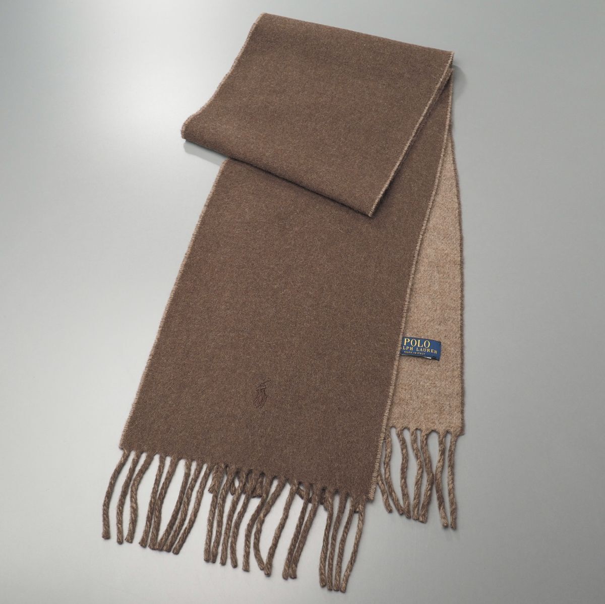 | GS5146◎ポロラルフローレン 伊製 ダブルフェイス リバーシブル ウール マフラー ストール ショール ブラウン系 全長:約174cm ポニー刺繍 | |||