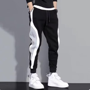 068:メンズワイドルーズカジュアルパンツメンズパッチワーク9点スポーツ弾性ロープ通気性タイフットパンツ [浏览原始页面]