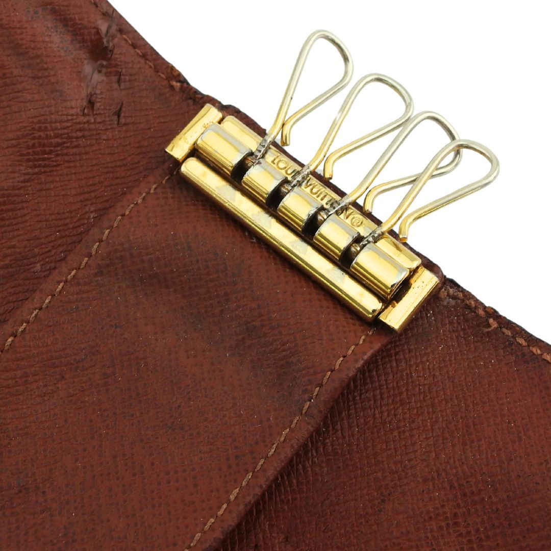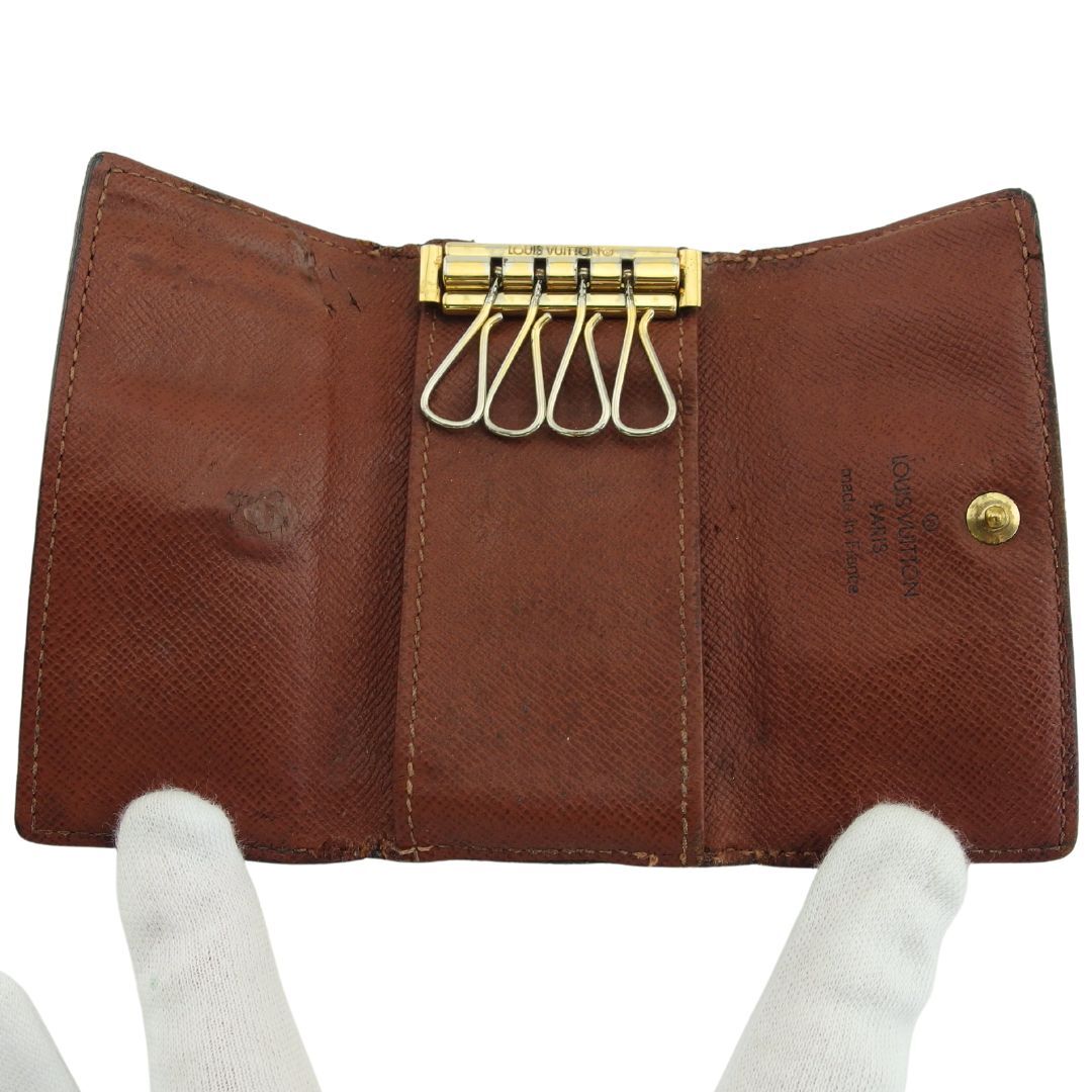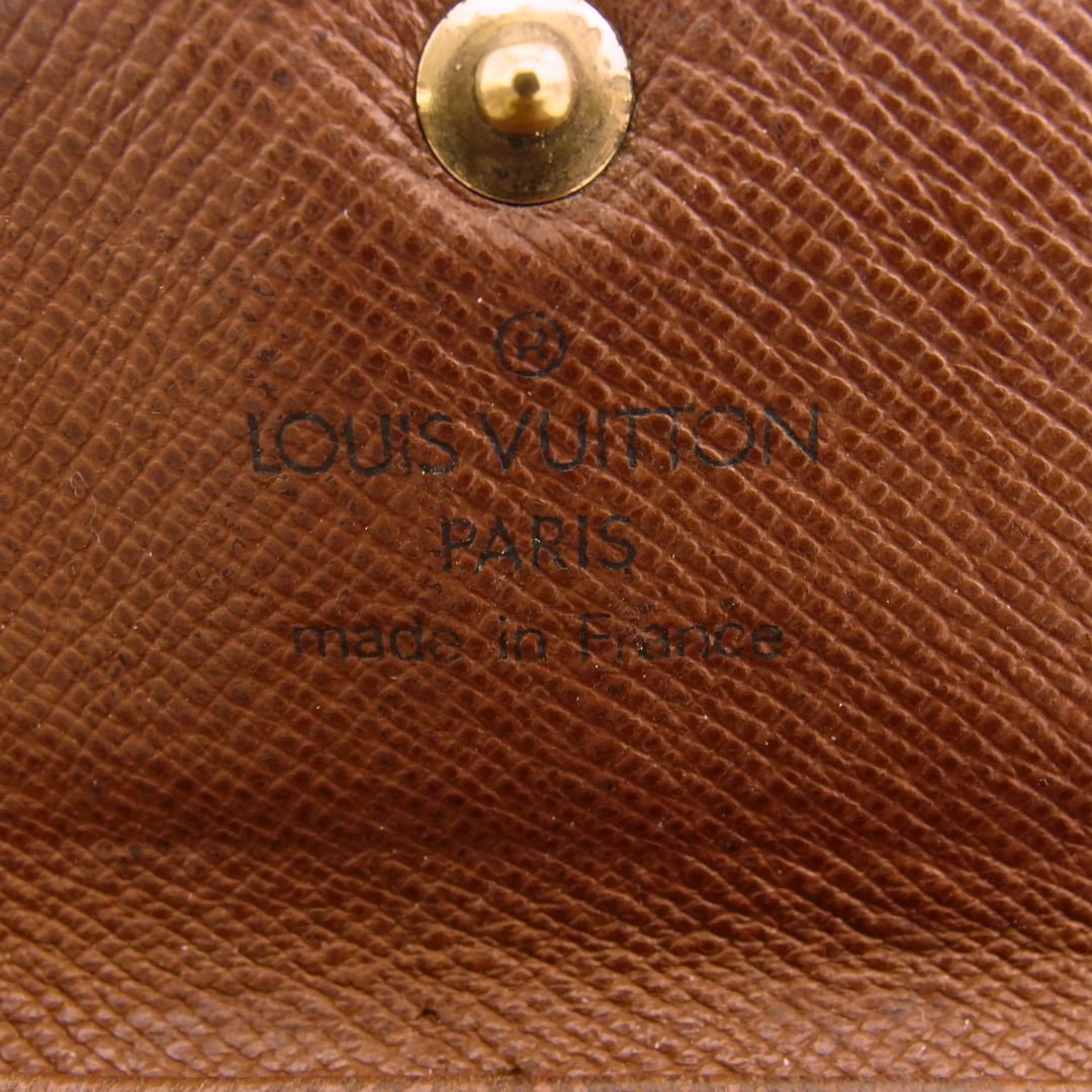 | コンディション | 全体の状態詳細:使用感はございますが、ご使用いただけます。社外リペア跡(折り曲げ部分のコバのヒビ割れ補修、内張レザーの裂け目&穴補修)あり。外側:モノグラムキャンバス(折り曲げ部分にヒビ割れ、反り、コバに補修跡)、ボタン(傷)あり。内側:レザー(キーフック跡、傷、黒ずみ汚れ、裂け目と穴の補修跡)、キーフック&金具(傷、メッキハゲ)あり。その他、中古品のため スレ 汚れ 傷 などの一般的使用感がある場合がございます。ご了承ください。 |