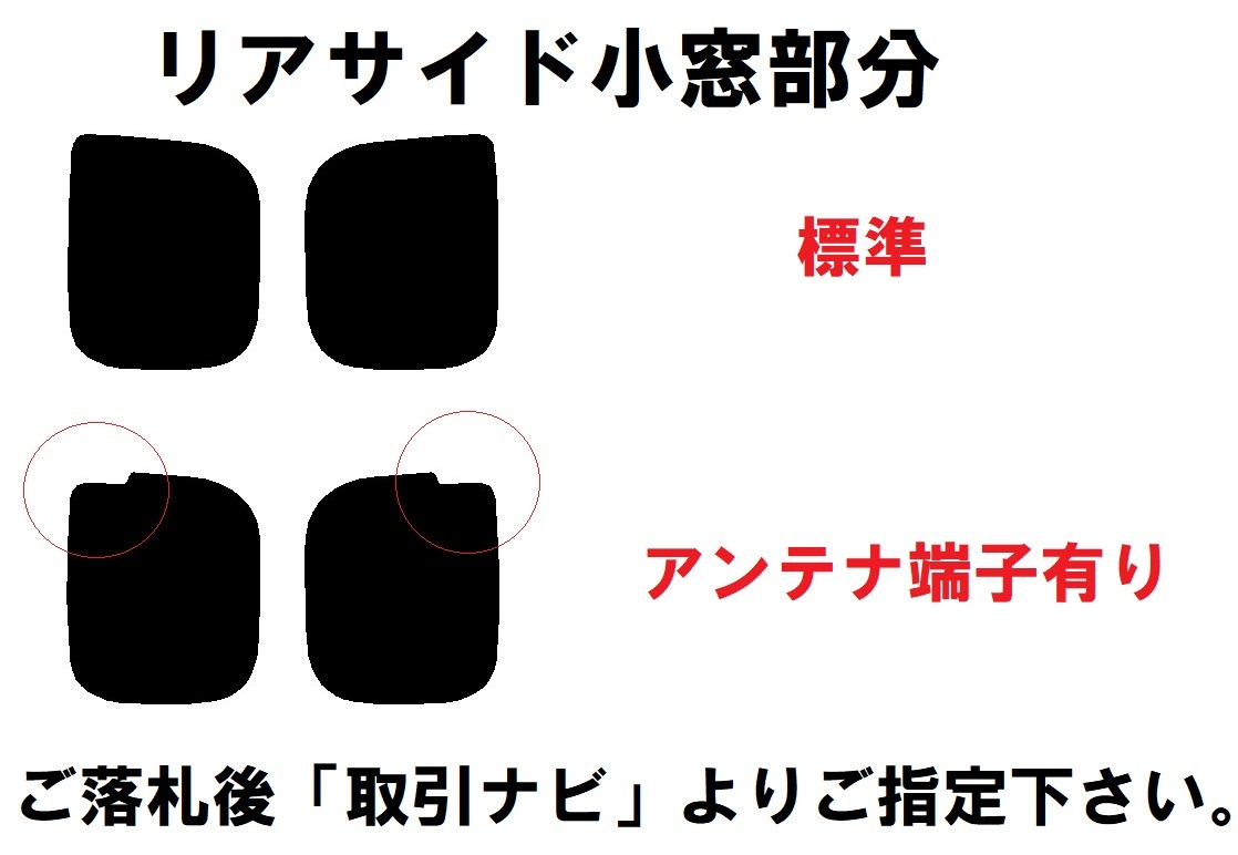 ご落札後「取引ナビ」よりご希望のフィルム・リアサイド小窓のアンテナ端子の有無 をお聞きさせて頂きます。 | ||