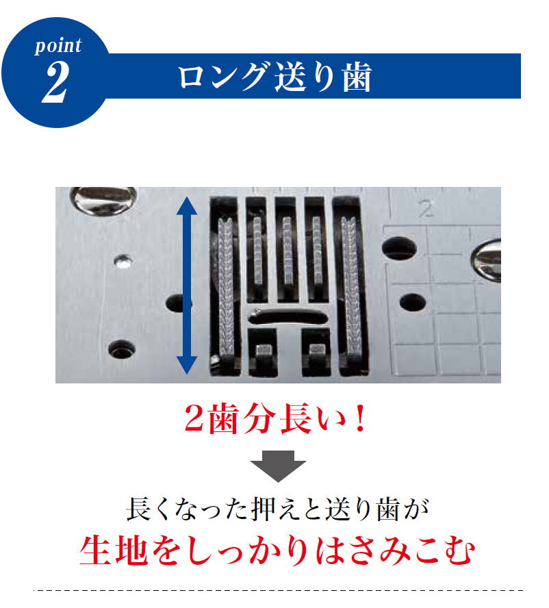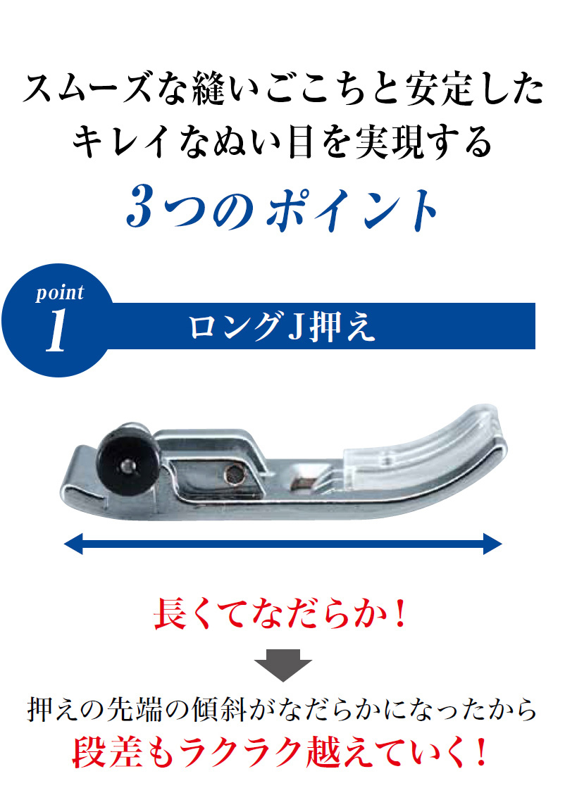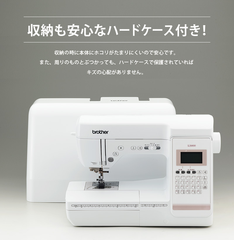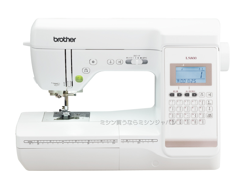 | ♪主な機能 | ・模様数 ・糸調子 ・送り歯枚数 ・自動糸切り ・針穴糸通し ・下糸クイック ・簡単下糸巻き ・天びんシャッター ・止めぬいスイッチ ・ドロップフィード ・LEDライト ・針位置停止(切替) ・エラー及びメッセージ表示 |