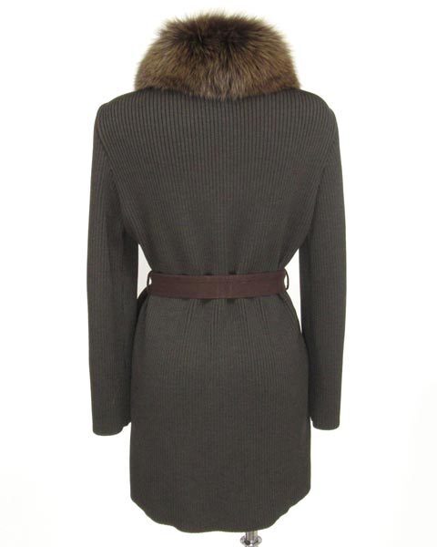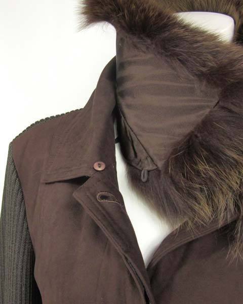 | ハロッズ Harrods 茶ファー付ニットコート |