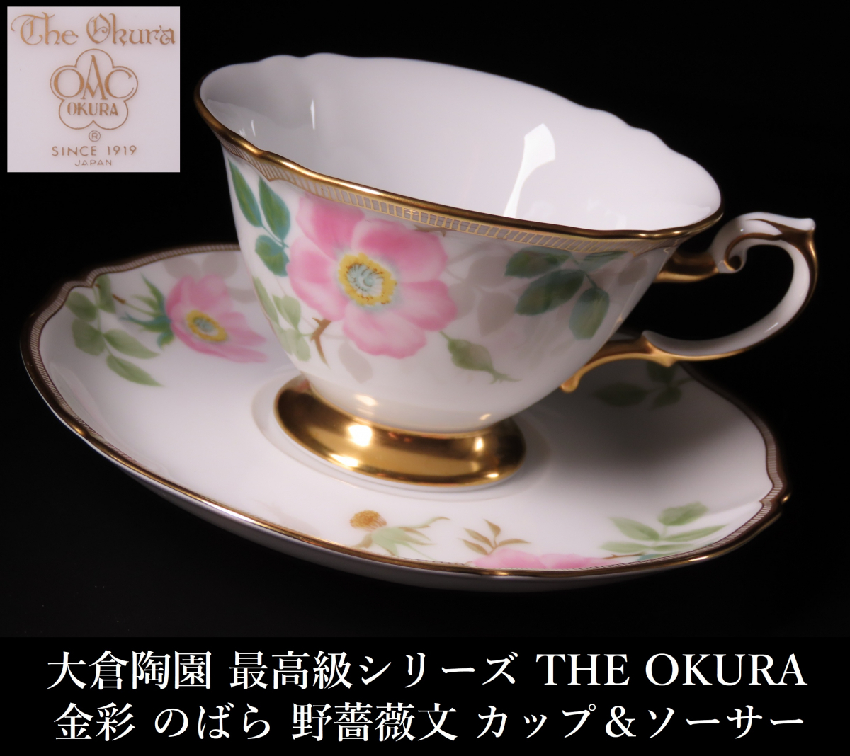 【ONE'S】大倉陶園 最高級シリーズ THE OKURA 金彩 のばら 野薔薇文 カップ&ソーサー C&S 珈琲碗皿 西洋美術 | |||