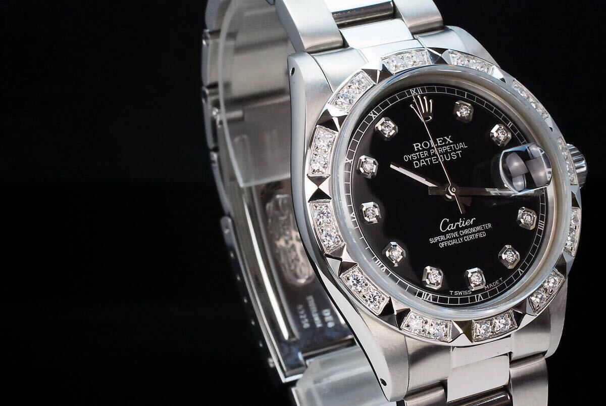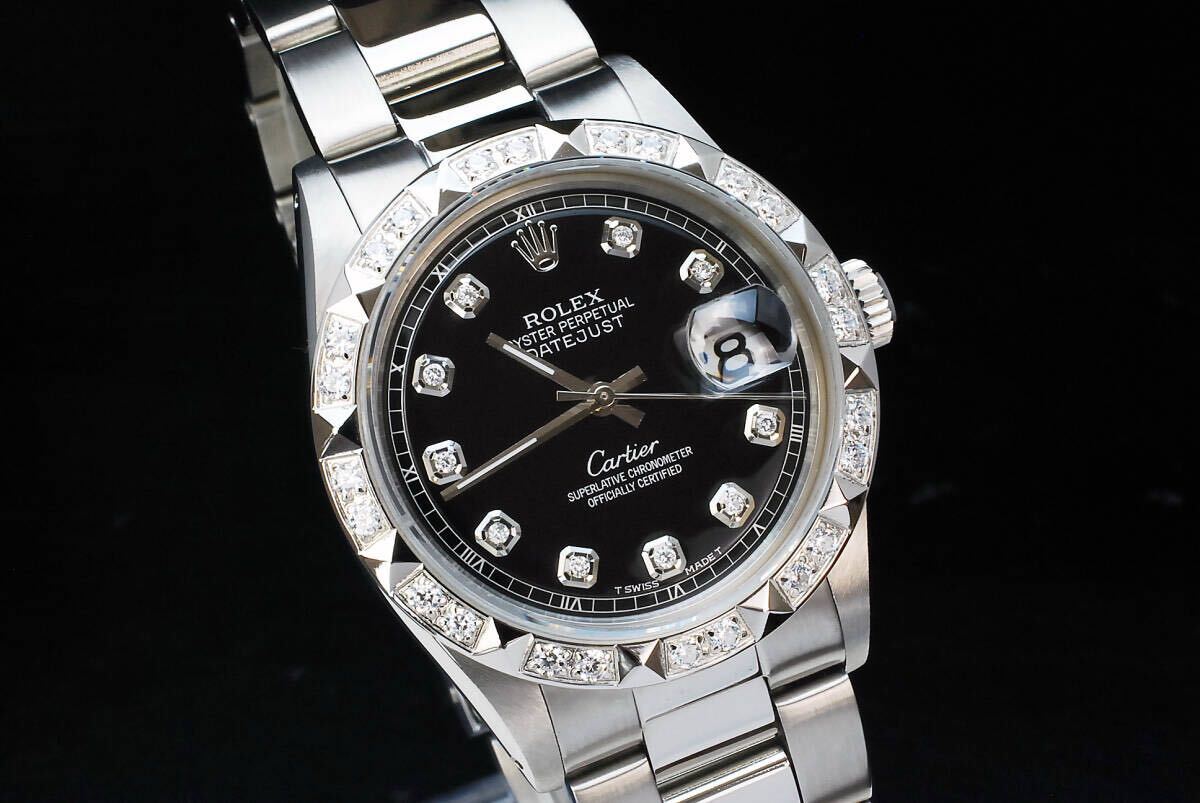 | 極美品【2年/本物保証】OH済 ブラック デイトジャスト 36mm 10P 天然ダイヤ Ref.1601 Cal.1570 サファイアガラス風防 ROLEX OH済 仕上済 メンズ 極美品 24時間内発送
