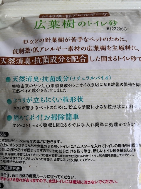 | * 商品説明 * 低刺激、低アレルギーの広葉樹を使用した小動物のトイレ砂。 国産 1.8L入り×5袋セット ※商品重量約3420g 未開封品ですが袋にやや汚れがある場合があります。処分品とご理解の上ノークレームノーリターンでお願いします。 | ||||||||