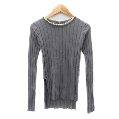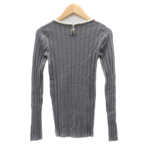 バースデイバッシュ BIRTHDAY BASH リブニット カットソー 長袖 パールビーズ グレー /YK41 レディース