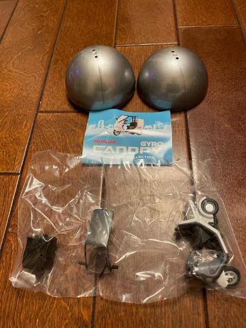 ケンエレファントから発売の『HONDA ジャイロキャノピー 全6種』のうち「ブラック」になります。一個500円ガチャだけあって、精巧な仕上になっています。破損しやすそうなパーツがありますのでカプセル入りにて発送します。内袋未開封、リスト付きです。