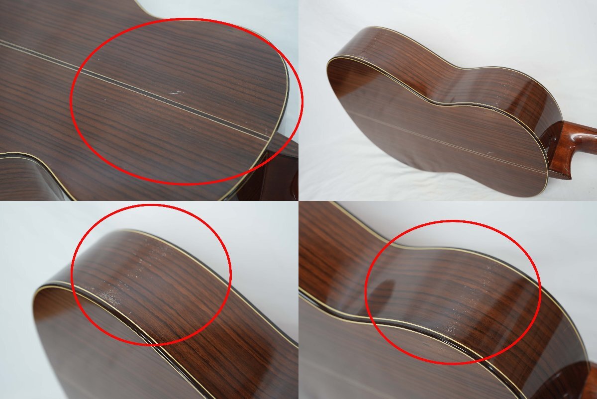 丁寧な作りと品質の高さで定評のある日本製クラシックギター RYOJI MATSUOKA M60です。70年代から製造されていた国産モデルで上質な材を使用した貴重な1本です。 柔らかみのある心地よいブライトなサウンドで飽きのこない出音です。使い込まれていますがまだまだ長くご使用いただける高品質なクラシックギターです。 ■■■以下わかる範囲でのスペックです。■■■ ボディ材 : スプルーストップ+ローズウッドサイドバック ネック: Mahogany 指板 : Rosewood ピックアップ : 非搭載 重量 :約1.4kg ナット幅 : 約51.8mm シリアルナンバー : 2090×× カラー : Natural フレットは主観ですが約8~9部山程度残量があります。 ■商品の状態■ *傷や弾き傷などがありそれなりに使用感は感じられるプレイヤーズコンディションです。 *日焼けによる変色があります。ネック裏にクリアー塗装の薄れ、テカリがあります。 *ネックはほぼフラットで反りは感じられません。 *動作確認済みです。 ■付属品■ 社外ギグケース | ||
