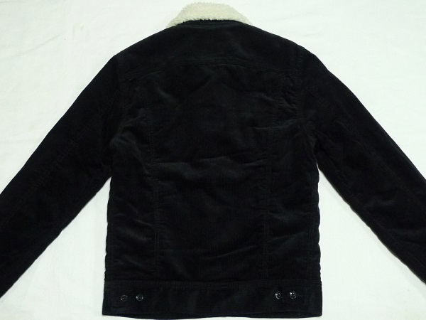 | 新品未使用。Lee・リーの「OUTERWEAR」シリーズのウィンター・ジャケットの定番「ストーム・ライダー」のコーデュロイ素材のボア・ジャケット・バージョン「BOA STORM RIDER」のサイズSMALL(36相当)になります。(品番LT0523-1801、定価15,000円、税込み16,500円)。カラーはブラックでブラックのコットン・コーデュロイに内側のボア・ライニングはオフ・ホワイトの定番の組み合わせになります。中畝のコットン100%のコーデュロイ素材に保温性の高いボアをライニングしたウィンター使用の「ストーム・ライダー」で毛布を纏ったかのような暖かさを実現しています。ボタンは「Lee Riders」刻印・ボタン、サイド・アジャストは黒のネコメ・ボタン(樹脂ボタン)、ラベルは「STORM RIDER」プリント・タグ、ピスネームはMR無しのLee、R表記、両腹部に片玉縁のハンド・ウォーム・ポケットが付きます。シルエットはライダース・ジャケットをベースにしていますので、ボディラインに美しく沿うように立体裁断されており、袖の裏地には腕どおりの良いポリエステルのキルティングが使用されていますので袖だけ膨らむようなことも無く、防寒性の高いボア・ライニングながら美しいシルエットを保っていますので、バイクのライディングなどでタイトに着こなしたい方にもオススメです。メーカー適合サイズはチェスト80~88cm、身長155cm~165cm。実寸は肩幅(直線で)約43cm、着丈(衿下より)約62cm、身幅(腋下で)約50cm、袖丈(肩口から先まで)63cmとなります。(素人採寸ですので多少の誤差はお許し下さい。)素材表示は表地綿100%、裏地ボア部分ポリエステル100%、ボア部分基布ポリエステル100%、袖裏ポリエステル100%となっています。中国製。 | |||