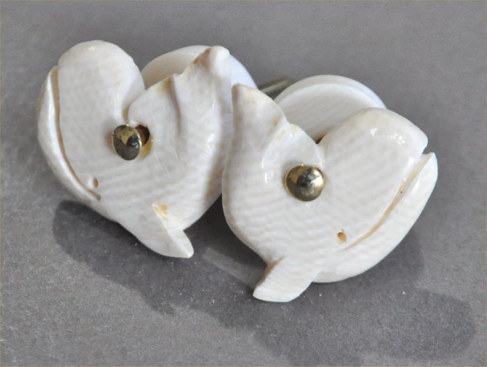 クジラデザインのノブサイズは、25mm×25mm厚み5mm ワッシャー16mm径厚み4mm磨き仕上げ素材マンモス牙可愛い尾を跳ね上げたクジラデザインのノブです。穴の重心を上の方にしてあるので綺麗に下がります。