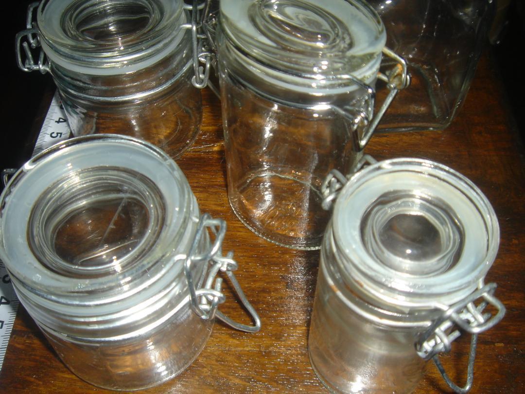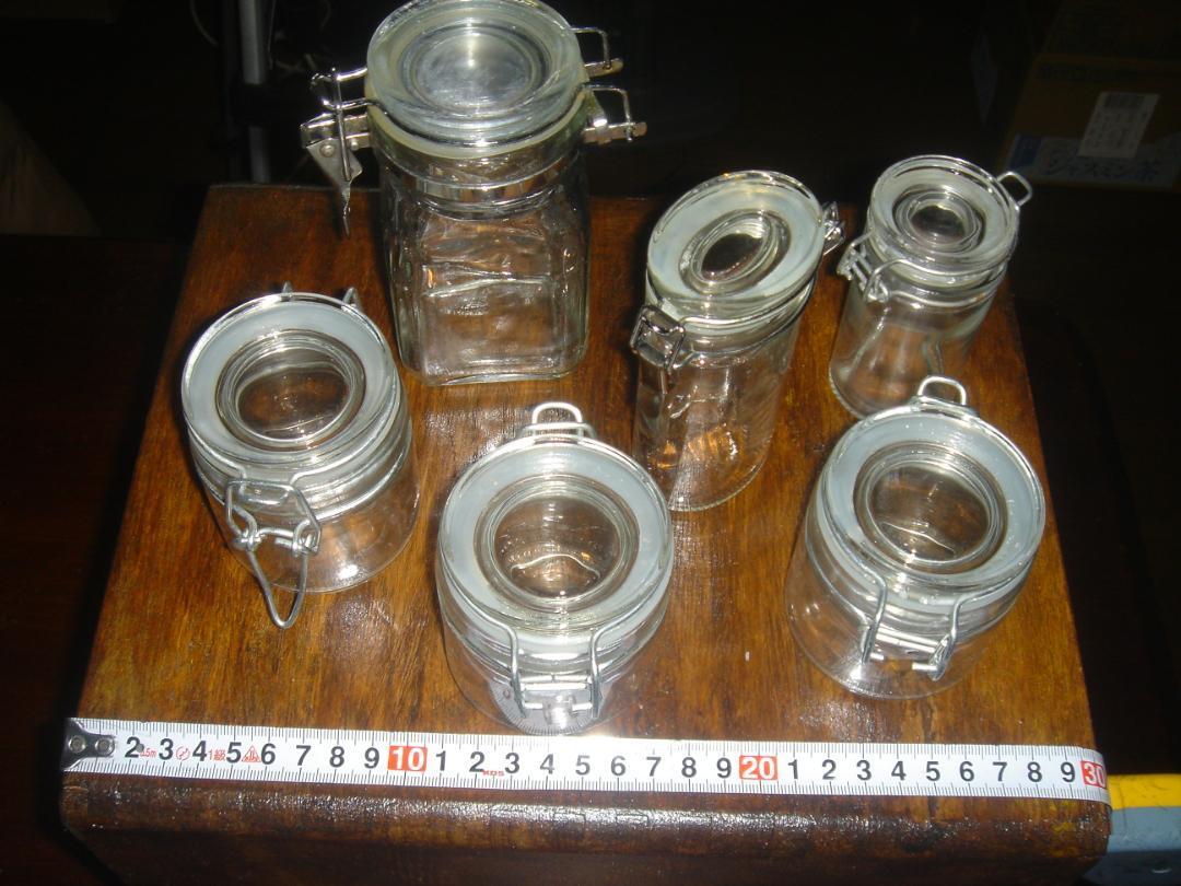 中古、使用感なし。 シリコンパッキン問題なし 1個だけ少し針金錆 様々なサイズのガラス密閉容器6個セット、食品保存に最適。