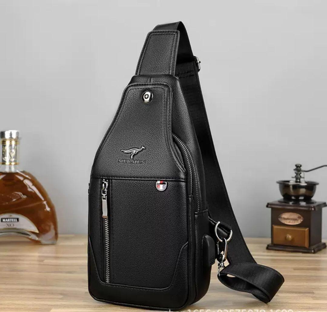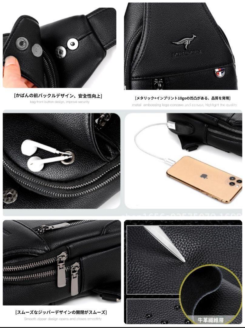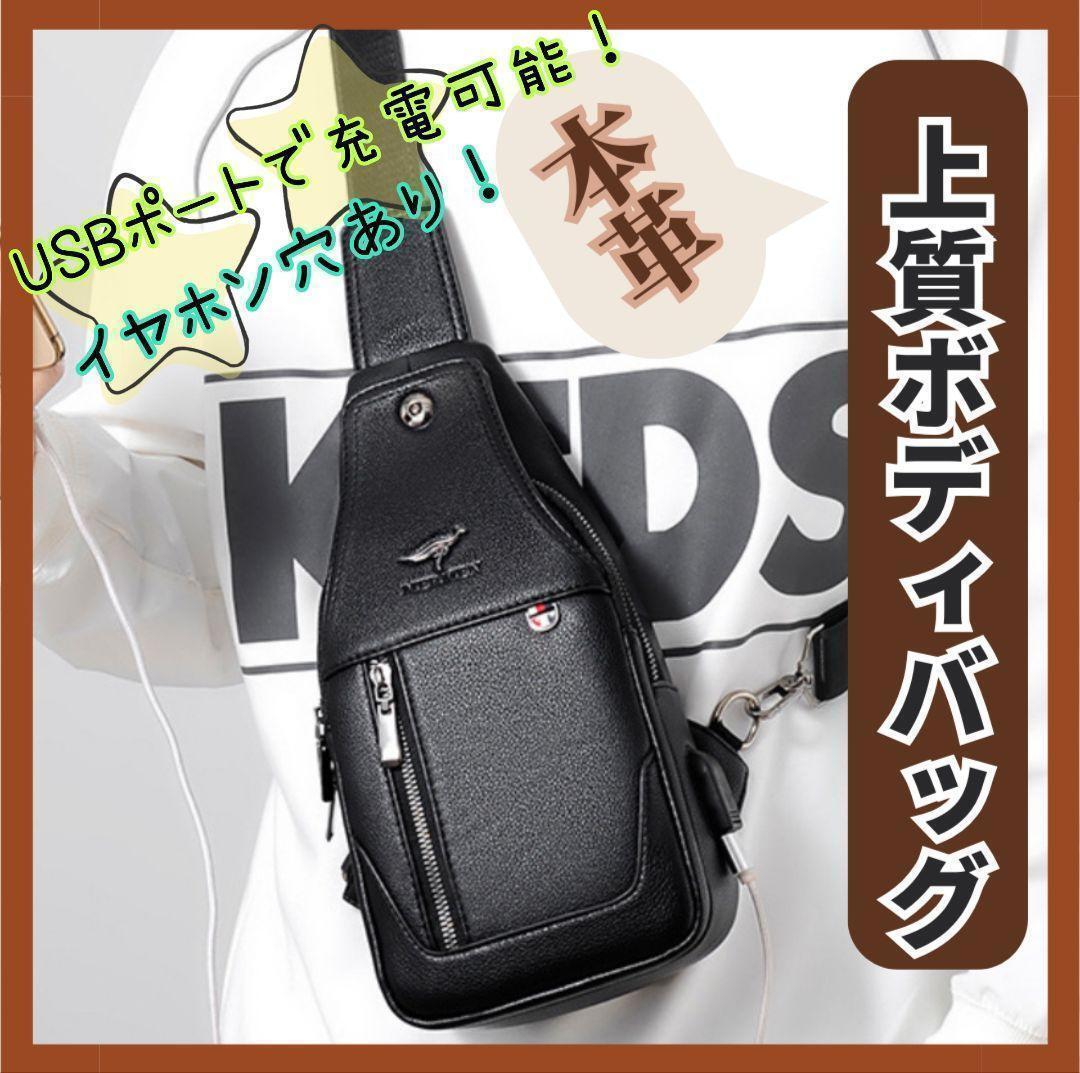 ◆USBポート付き高品質牛革のボディバッグです