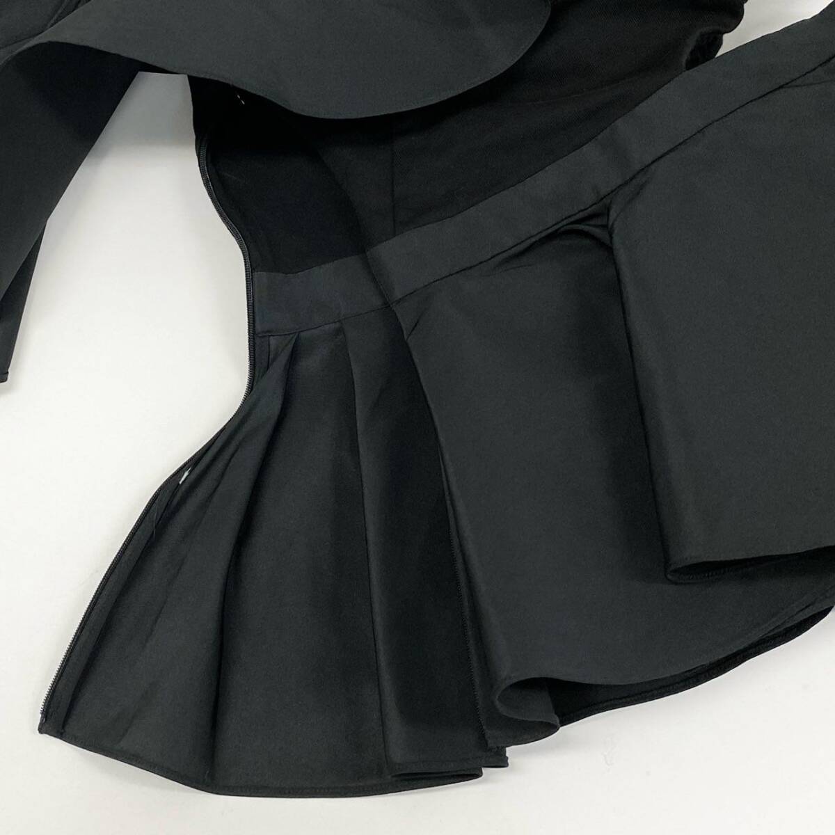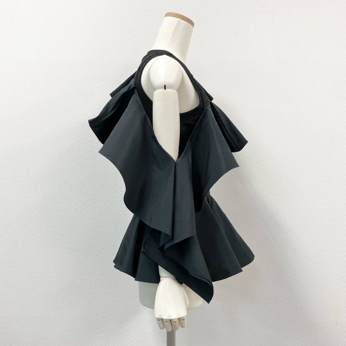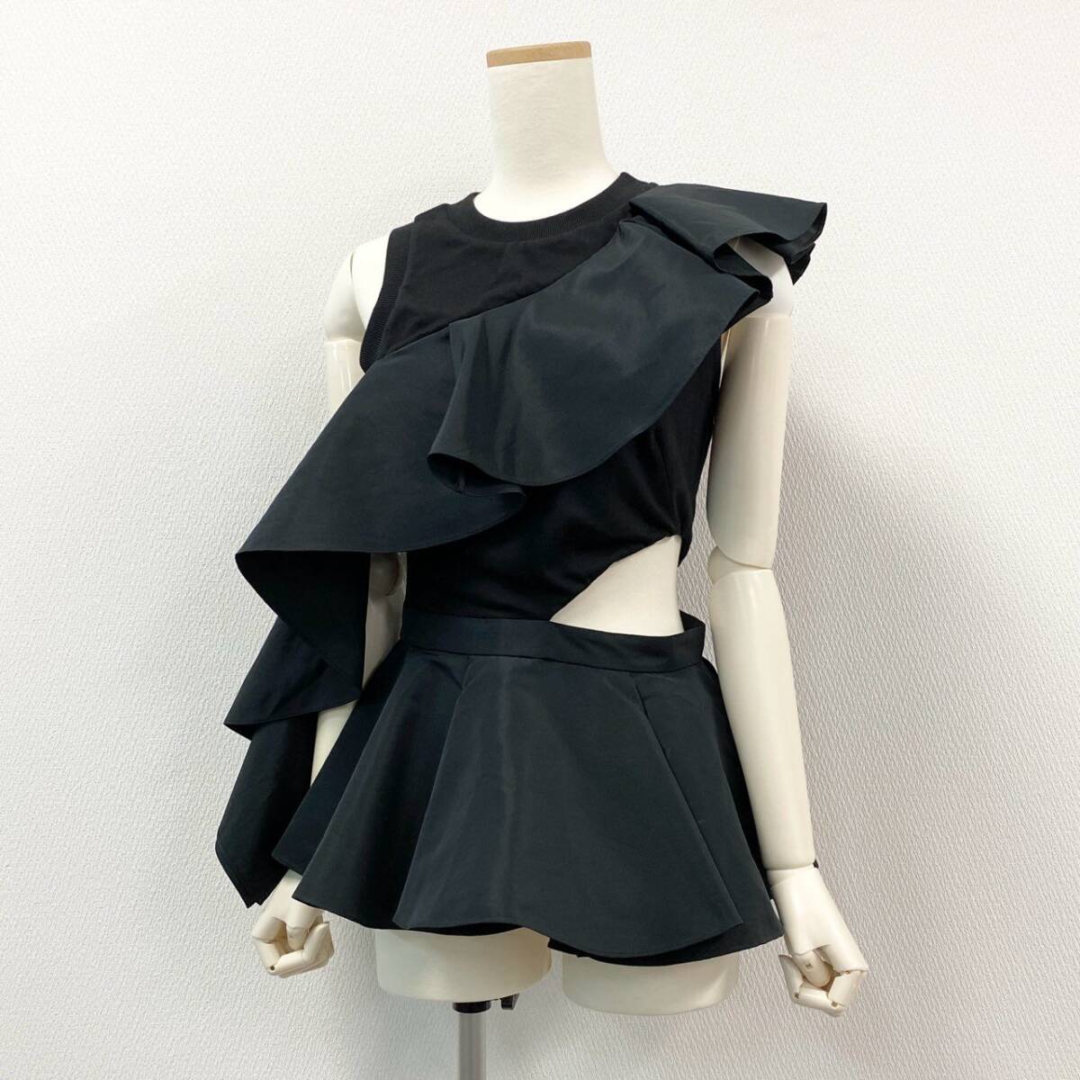 | スタッフ商品コメント | アレクサンダー・マックイーンのデザイン美が光る、アシンメトリーなブラックトップス。素材は光沢感のあるナイロン混のようなハリのある質感で、構築的なビッグフリルが印象的。右サイドのカットアウトやウエストから広がるペプラムデザインがエレガントなメリハリを演出。モードなスタイルやナイトアウト、パーティーシーンにおすすめの一枚です。 |