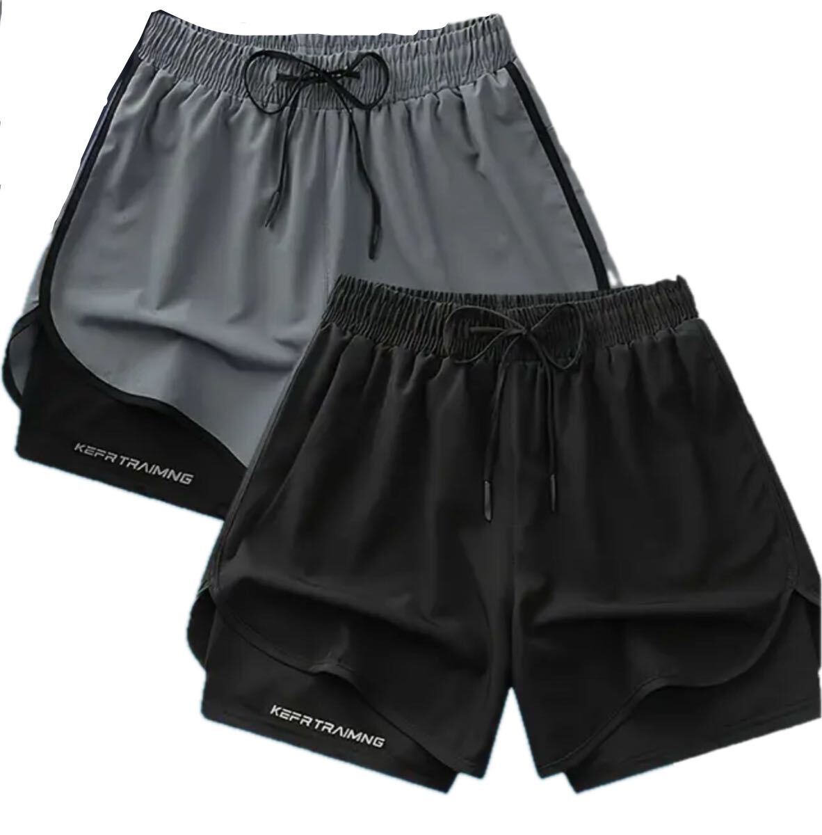 2枚セット ブラック・グレー 2重構造 速乾 ジム ストレッチ フィットネスショーツ ドローストリングウエスト アイスリキッドファイバー素材 ランニング・トレーニング用 軽量 透けにくい速乾アスレチックショーツ ハーフパンツ ショートパンツ S(JP-L)サイズ| 出价者 | 信用 | 价格 | 时间 |