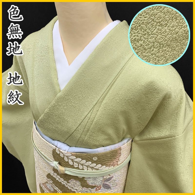 | 〇淡い黄緑色 色無地 地紋 抹茶色〇しつけ付き美品 (No.n) 細かな花や植物の地紋が浮かび上がる淡い黄緑色の美しい色無地です。 (画像の帯509my30や小物は参考商品で、本品には含まれません) しつけ糸がついています。目立つようなシミ・ダメージもなく美品です。 【表地素材】正絹 【色】抹茶色、淡い黄緑 *モニターによって色味は実際と異なる場合がございます。 【サイズ】裄:63.3cm、丈(肩から):160cm、袖幅:32cm、袖丈:49cm、前幅:22.5cm、後幅:28.5cm、裄の縫込み 身頃側:4.5cm、お袖側:3.5cm、内揚げ幅:9.5cm *素人採寸のため、多少の誤差はご容赦ください。 上質な逸品ですので、いかがでしょうか?よいお品物でお勧めです^^ | |