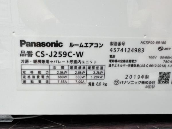 Panasonic パナソニック ルームエアコン CS-J259C-W 2019年製 エオリア おもに8畳 リモコン付き 中古 引取可 横浜市| 出价者 | 信用 | 价格 | 时间 |
