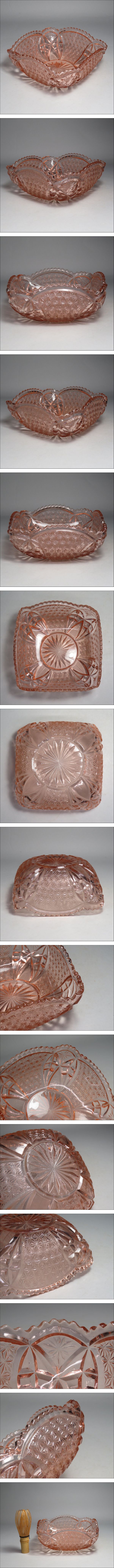 | 1円スタート~ 大正ロマン 時代プレスガラス ピンク 輪花口大きな深皿/硝子お菓子器 気泡 大正浪漫~昭和レトロ ヴィンテージ | ||