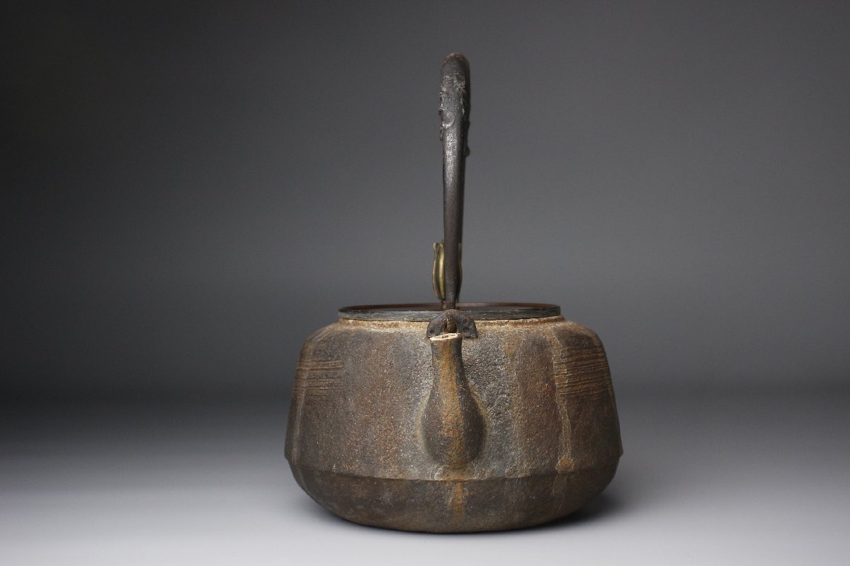[.QU]25.9 250916S18| * * * 商品詳細 * * * ここでしか出逢うことのできない唯一の美をご紹介させて頂きます。 加賀名工 釜師 十二代宮崎寒雉による手取釜のご紹介です。 シンプルな造形ながらも拘りの感じられる意匠で 端正な摘みのある艶やかな赤褐色の蓋、 胴には刷毛の後の様な直線文がさりげない存在感を示し、 取っ手の曲線美が作品全体を引き締めています。 経年を経た古鉄は風情があり、 新しい物にはない奥深さをご堪能いただけます。 この機会に是非ご愛蔵ください。 作家略歴 (1880~1964年) 金沢市に生まれる。本名豊作。 父11代寒雉に師事。 明治42年東京美術工芸展入選。 ロンドン日英博覧会、パリ万国装飾博覧会に出品。東京大正博覧会入選。 昭和15年 紀元二千六百年奉祝展入選。 昭和34年 金沢市文化賞受賞。 昭和36年 鋳工技術(茶の湯釜)で石川県指定無形文化財保持者に認定。 ■商品内容/手取釜、共箱 ■サイズ/横16cm×縦20cm×奥行13.5㎝ 箱:横17cm×高23.5cm×奥行17㎝ ■状態/スレ、傷、錆び、内に剥げ、蓋に少し潰れ、 箱にスレ、小傷、シミ、蓋に少し曲がり、蓋裏に直しがございます。 水漏れはございません。     ※写真にてご確認、ご了承の上ご入札ください。   * * * 支払詳細 * * * !かんたん決済  * * * 発送詳細 * * *  入金確認後3営業日以内に発送致します。 ※直接引き取りも可能です。 60~160サイズにつきましては 佐川急便、ゆうパックのどちらかで発送いたします。 ゆうパック発送の場合、弊社の発送日から追跡サービスに問合せ番号が反映されるまで 約1日ほどお時間がかかりますのでご了承下さい。 * * * 注意事項 * * * 運送中の破損があった場合は速やかに当社までご連絡下さい。  保険を利用するのに受取連絡後に運送会社による現場での破損状況確認が必要となります。  勝手に返送されますと保険の適用外となりますのでご注意ください。  * * * * * * お問い合わせ:082-236-8669 |