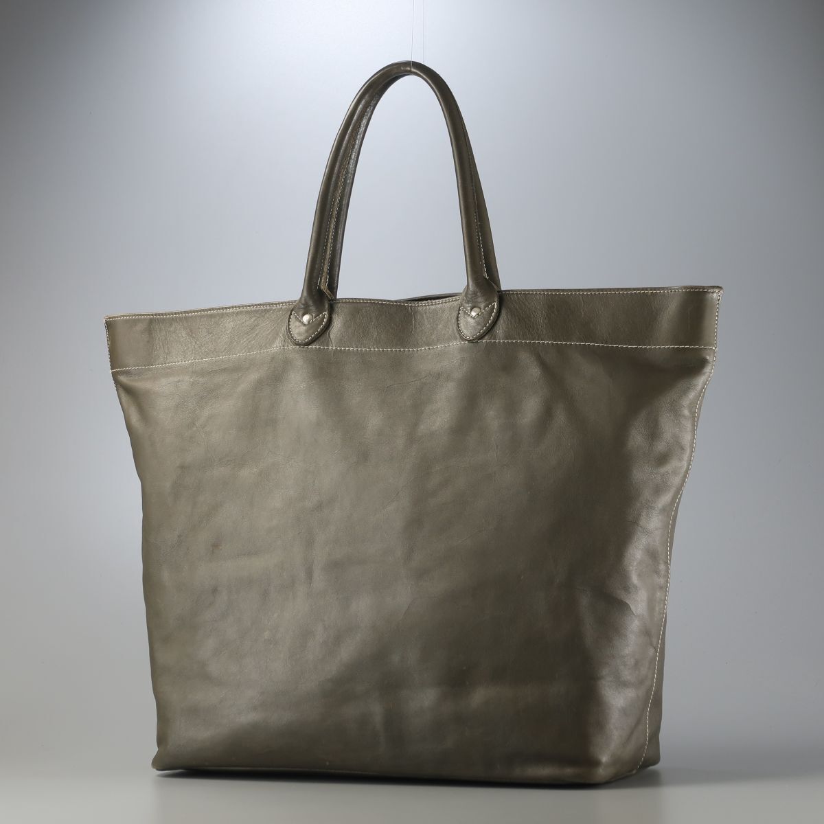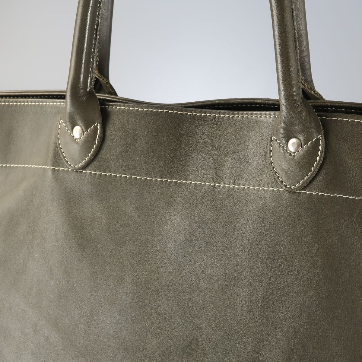 比較的しなやか風合いの革を使用したシンプルなレザートート。