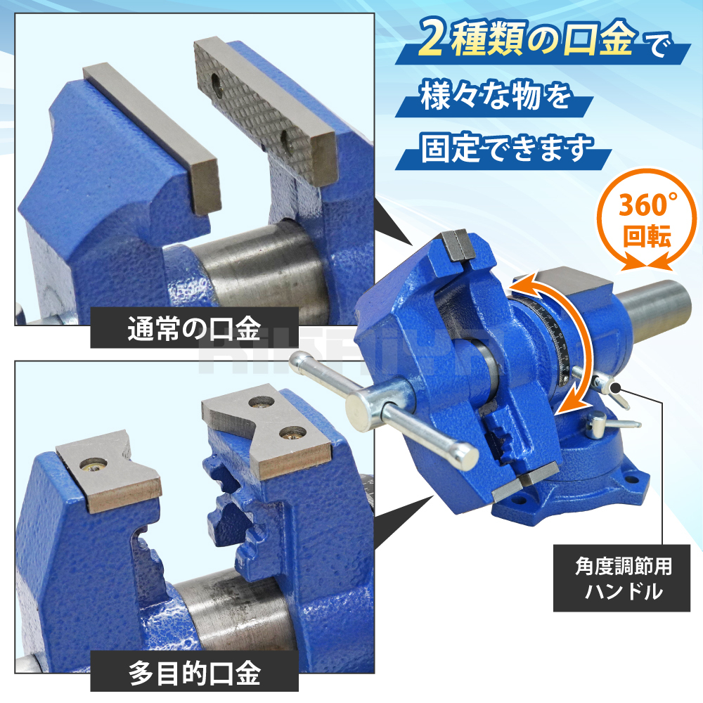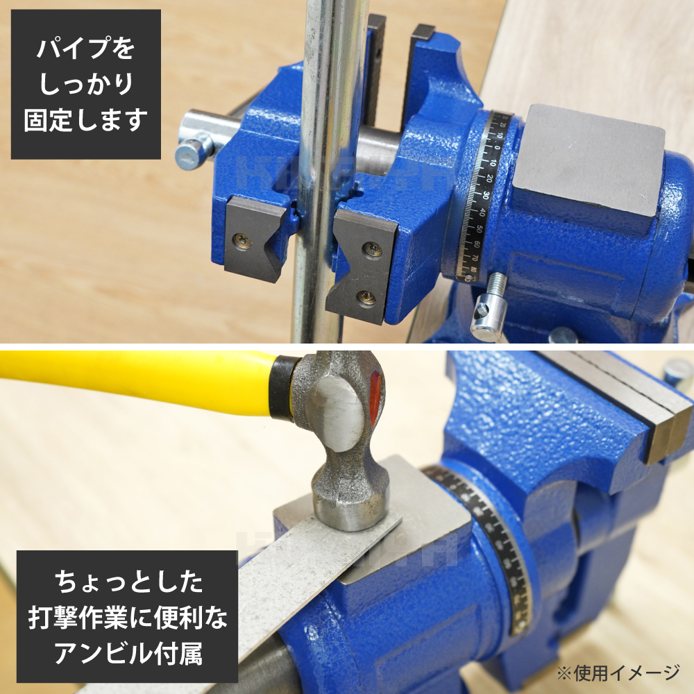 ●台座部分とバイス部分が360度回転し、作業に合わせた角度に自在に調節できる ●2種類の口金でパイプやベアリング等、さまざまな物を固定できます ●ちょっとした打撃作業に便利なアンビルも付属しています ※固定用ボルトは付属しません ※入荷時期により本体色やデザインが変更になる場合があります ご使用に問題のない場合(返品/交換)はお受けしておりませんのでご了承ください ※本体色はグレーになります ★ベンチバイスのラインナップはコチラ |