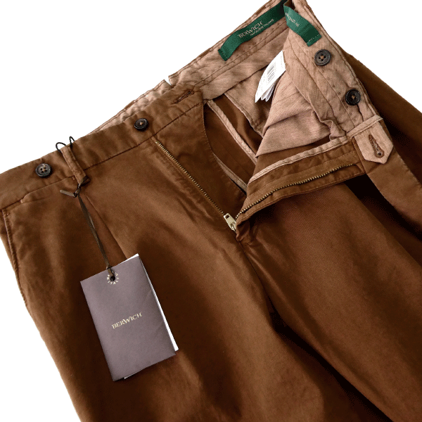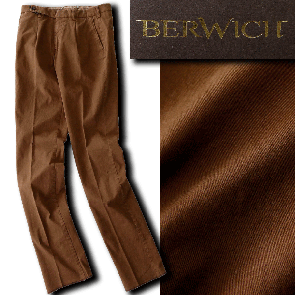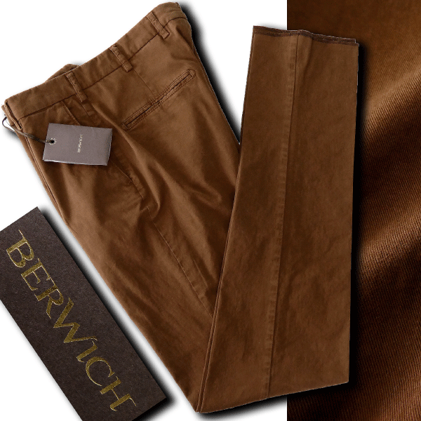 【BERWICH(ベルウィッチ)】 イタリアのパンツ専業ブランド〈BERWICH(ベルウィッチ)〉。 1975年、南イタリア・プーリア州マルティナフランカにて、パンツ専業メーカー〈ICOMAN 2000 s.r.l.〉として創業。 長年にわたり培われたテーラリングの伝統とクラフツマンシップを受け継ぎながら、常に革新的なモノづくりを追求してきた名門です。 2007年、自社ブランドとして誕生した〈ベルウィッチ〉は、「旅と探検の魅力」をテーマに掲げ、未知への好奇心と自由な感性をパンツというキャンバスに投影。 100%イタリア製にこだわり、端正なシルエット、美しい発色、確かな縫製技術で、世界中のファッショニスタを魅了しています。 今作は、上質なギャバジン織りのコットンツイル生地を使用したチノスラックス。 程よくストレッチを効かせることで、快適な穿き心地と美しいラインを両立。 さらに製品染め・製品加工によって生まれる独特の風合いと深みのあるカラーが、無地ながらも豊かな表情を演出します。 カジュアルなスタイリングはもちろん、ジャケットとのコーディネートにも品よく馴染む、〈ベルウィッチ〉らしいエフォートレスな一本。 シーズンレスで活躍する、大人のワードローブに欠かせないイタリアンモダンなチノスラックスです。 “旅と探検の魅力”をブランドテーマに掲げるBERWICH。 MORELLOはその精神を日常に落とし込んだ“スマートトラベルパンツ”としても活躍します。 「丁寧で確かな作り=日本製の丁寧で確かな作り」の精神をイタリア版に重ねて言うなら、イタリアのクラフトマンシップを感じる一本。 ぜひ、ワードローブに1本、“きれいめ+機能性”バランスの効いたパンツとして加えてみてください。 【デザイン】 ・テーパードシルエット ・ジッパーフライ ・1タック |