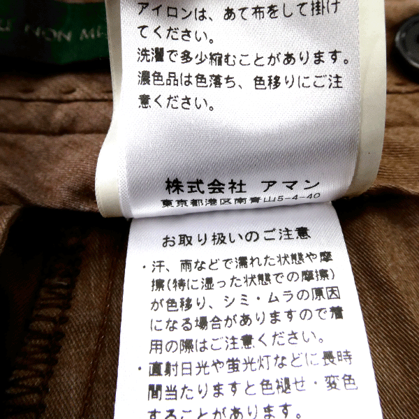 株式会社アマン正規品 定価39,600円 イタリア製 新品 未使用 紙タグあり ※この製品は、製品加工を施しております。また、天然繊維の自然な風合いを出す為、一点一点に微妙な色ムラ・風合い等の違いが有ります。製品の特長としてご理解をお願い致します。※ 48サイズ(Lサイズ相当) ※写真は別サイズを使用している場合がございます※ ※商品に記載されたサイズ・寸法です※ ウエスト83cm(内回り1周) 股上29cm 股下89cm 裾幅18.5cm 腿幅27.5cm(股下10cm部分) 表地:綿98% ポリウレタン2% ポケット口裏:綿100% ダークブラウン |