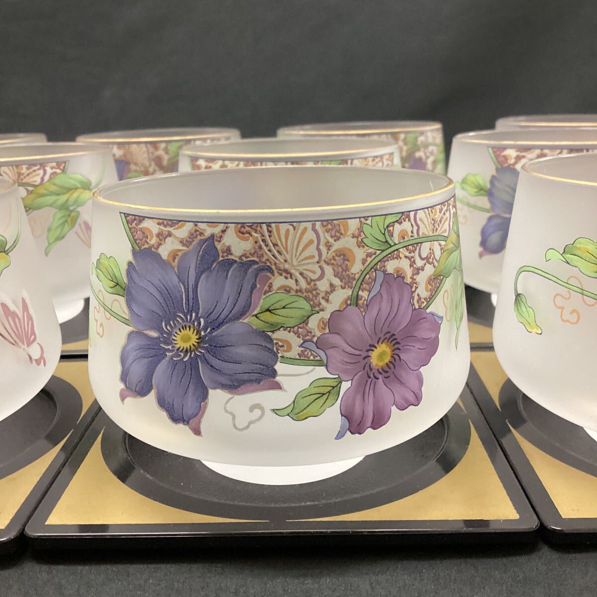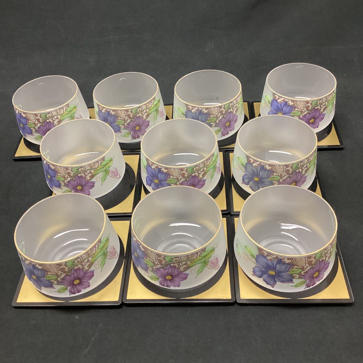 冷茶セット 10客 茶托 茶器 食器 和食器 湯呑 グラス 花柄 金彩 来客用 [浏览原始页面]
