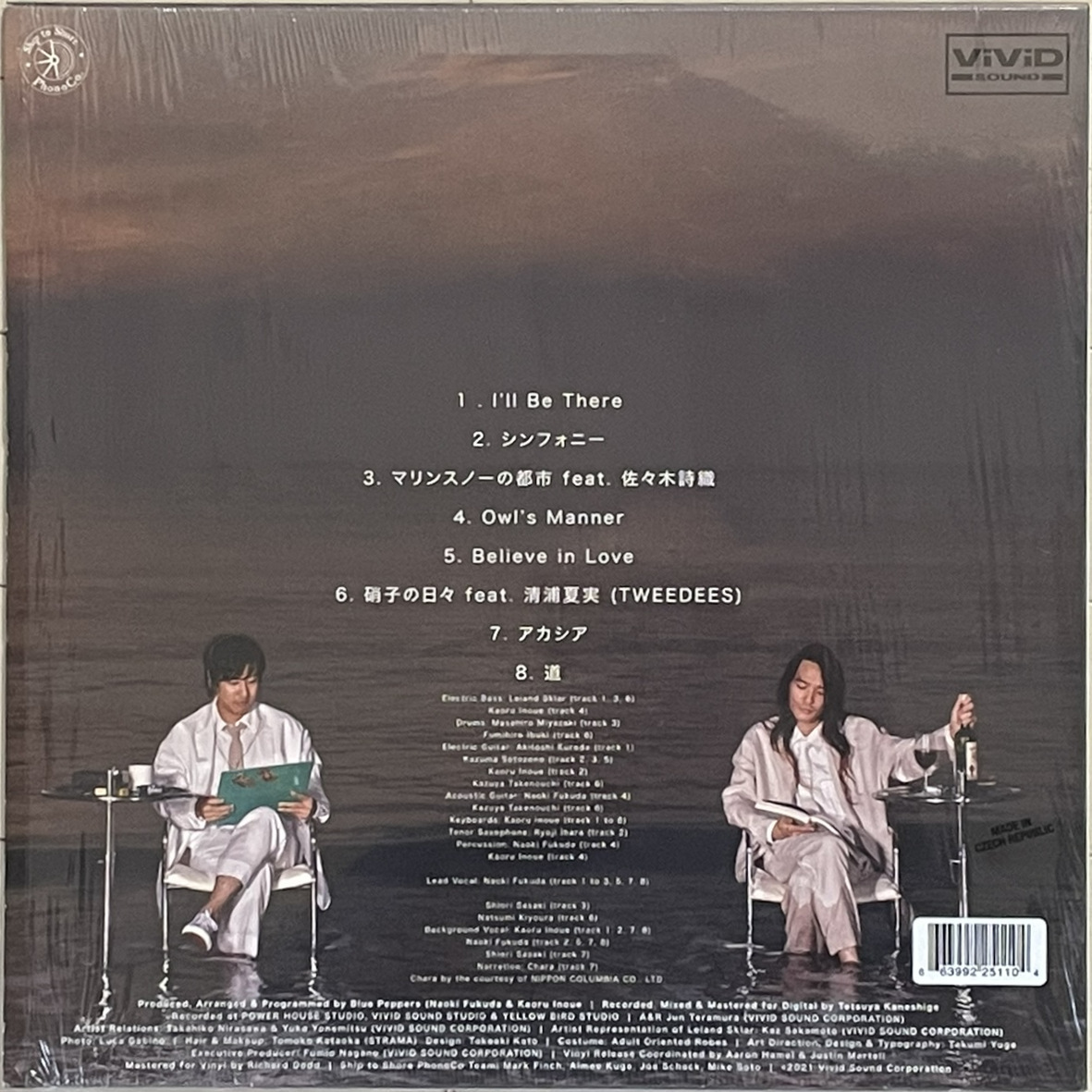 | ■ 曲 目 SIDE A 1. I'll Be There 2. シンフォニー 3. マリンスノーの都市 feat. 佐々木詩織 4. Owl's Manner SIDE B 1. Believe in Love 2. 硝子の日々 feat. 清浦夏実 (TWEEDEES) 3. アカシア 4. 道 |