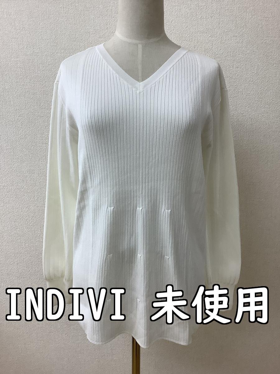 | 管理番号:10^138902 インディヴィ (INDIVI) タグ付き未使用 オフホワイト リブニット 表示サイズ:38 実寸(参考)