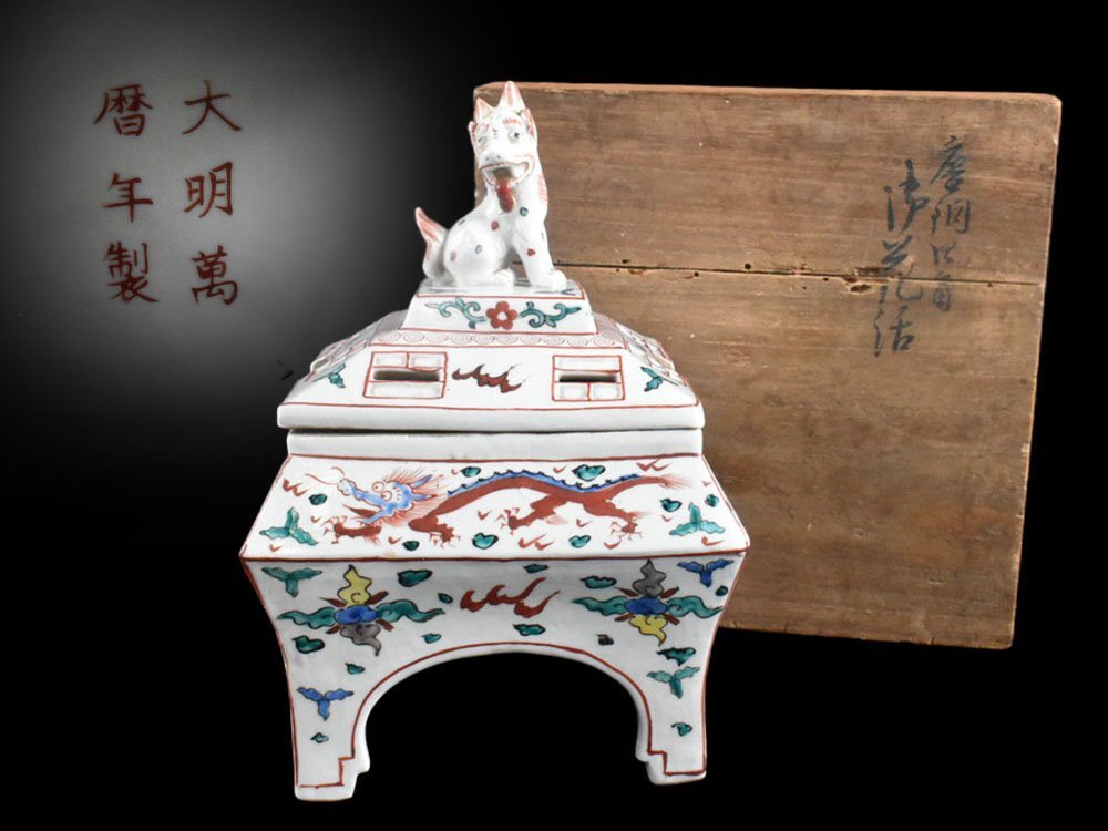 | 商品名 | 【雲】某名家買取品 中国古玩 大明萬暦年製 五彩 雲龍絵付獅子鼎形香炉 高さ25cm 箱付 古美術品(香爐)DJ1186 OThvbdks JBvhbfs |