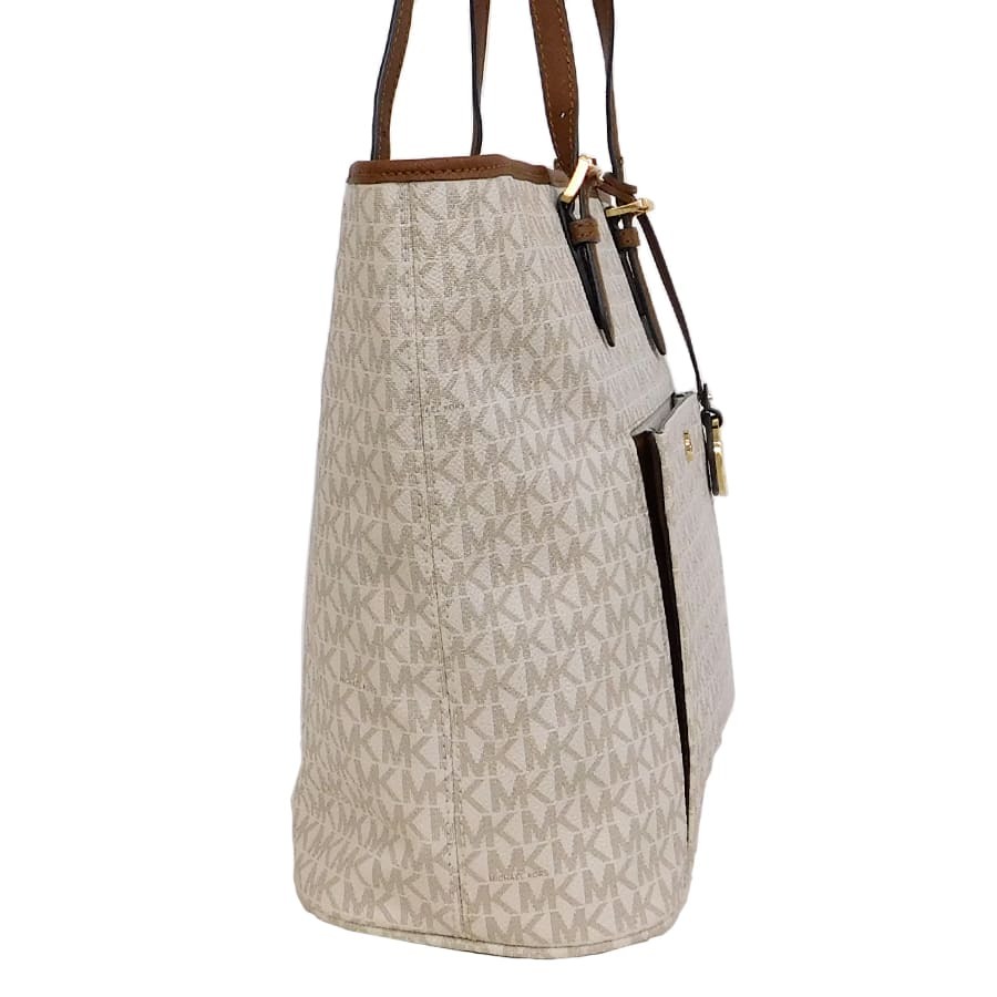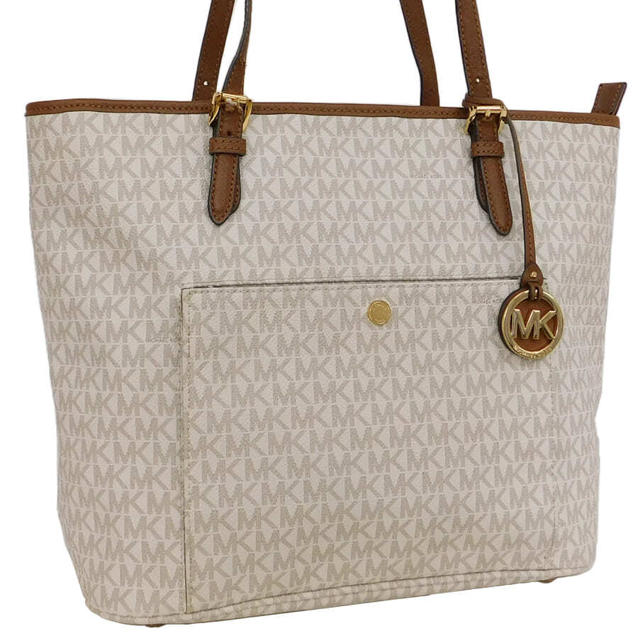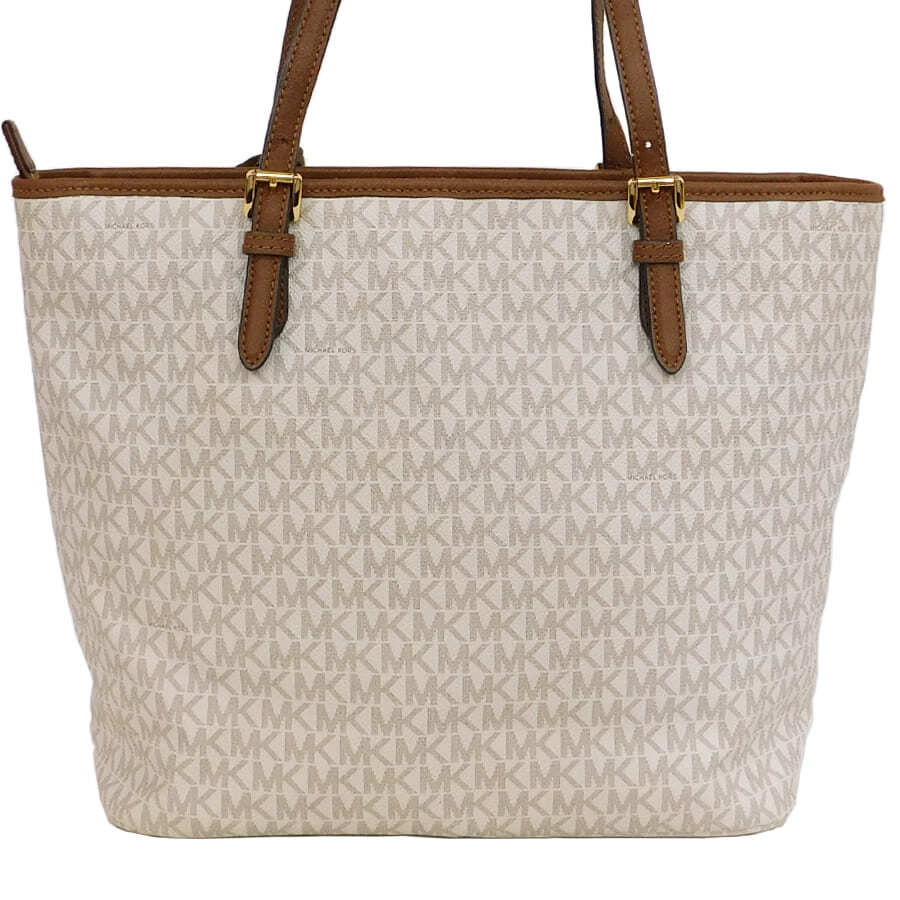 1円■美品/マイケルコース/トートバッグ/ロゴショップ/ホワイト系/PVC×レザー/レディース/MICHAEL KORS■E.Blm.An-13[中古]