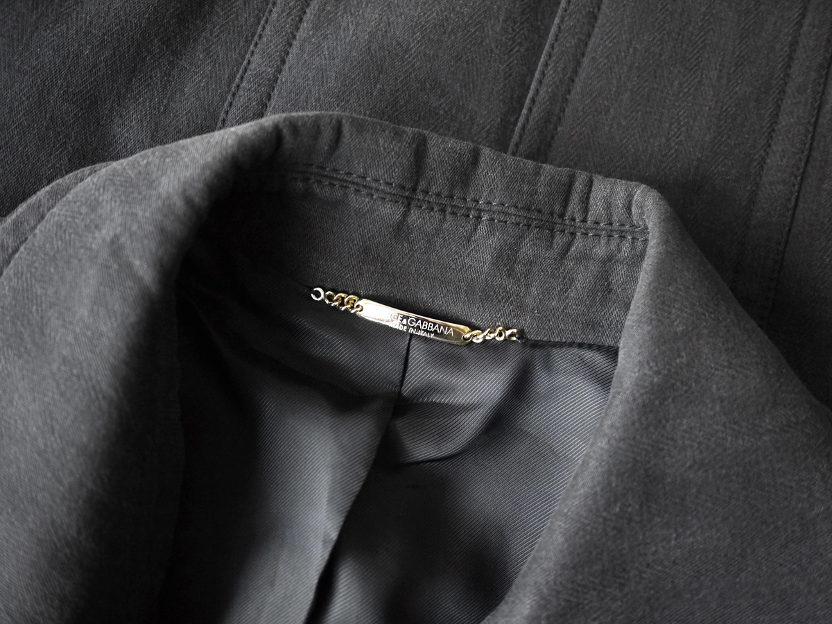 ゴールドチェーンやオリジナルボタン等、細部まで拘り抜かれた仕上りです。今期のメインコートはもちろん、品質、デザインどれをとっても一級品でございますので、一生もののコートとしてもお勧めできる逸品です。この機会にぜひよろしくお願いいたします。 brand Dolce & Gabbana made in Italy price \315,000(参考上代) material wool×cotton×nylon color charcoal Black サイズ 46 肩幅44 着丈78 袖丈66 身幅51(多少の誤差はご了承ください。) 状態 比較的使用感の少ないきれいなお品物です。特筆すべきダメージは見受けられず末永くご使用頂ける状態です。 |