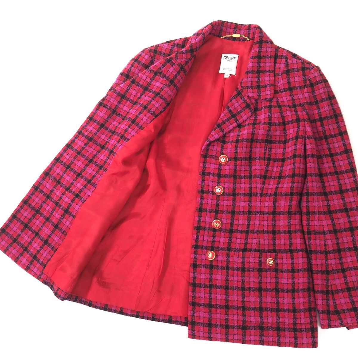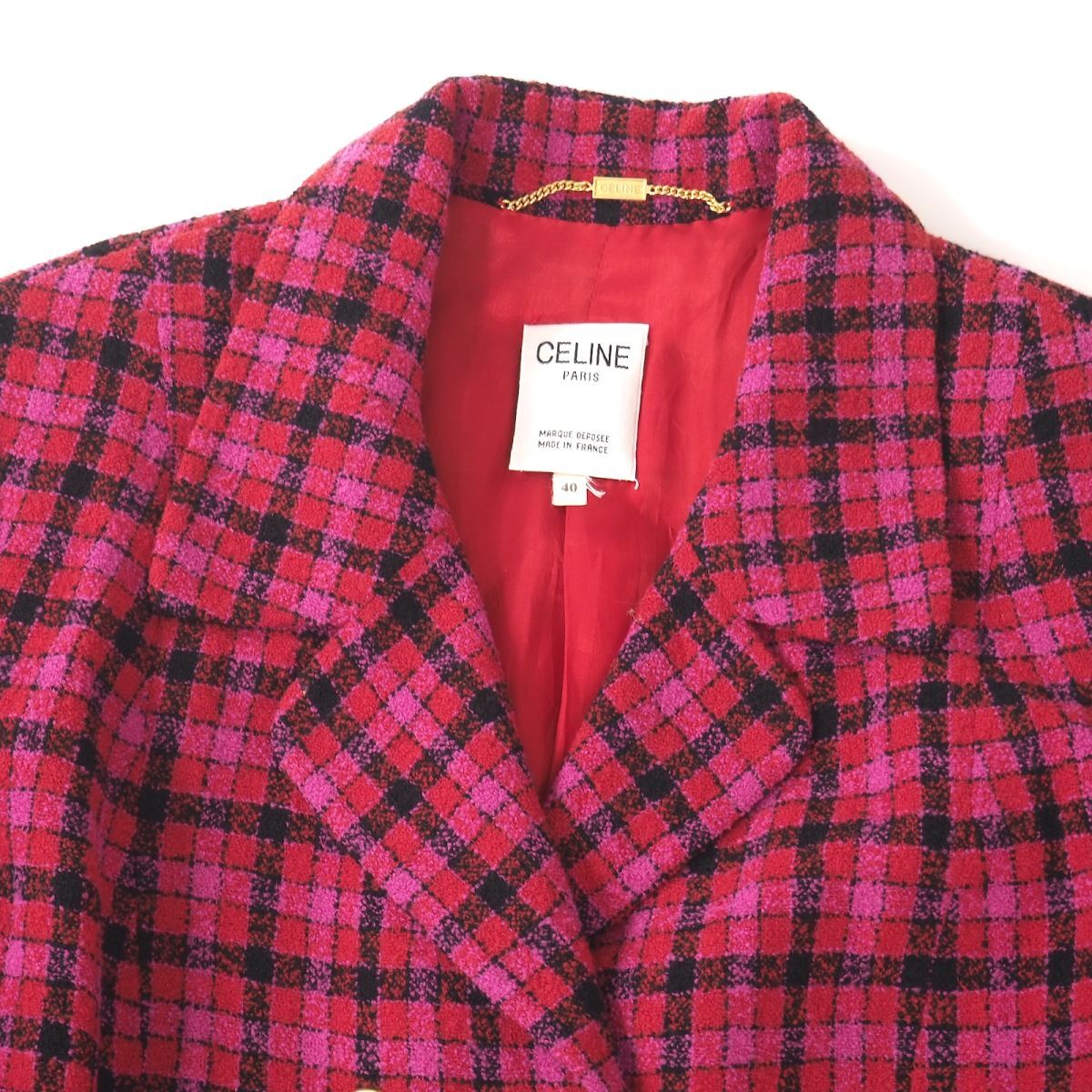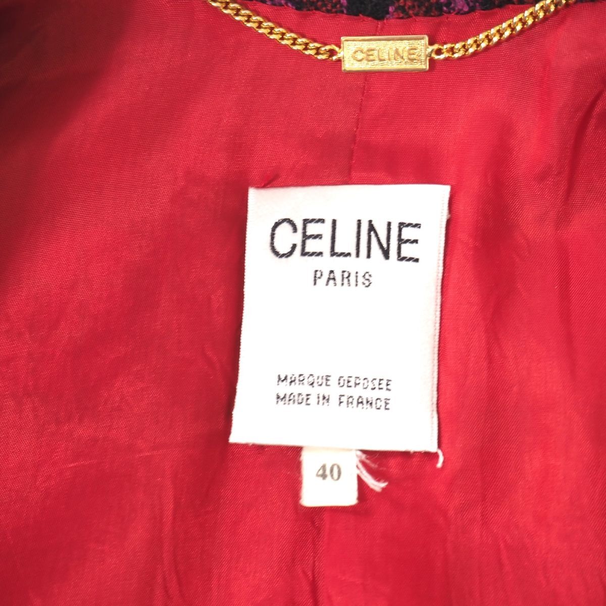 | 商品名 | 5-OK003 セリーヌ CELINE ヴィンテージ ルイード ジャケット ピンク チェック 40 レディース |