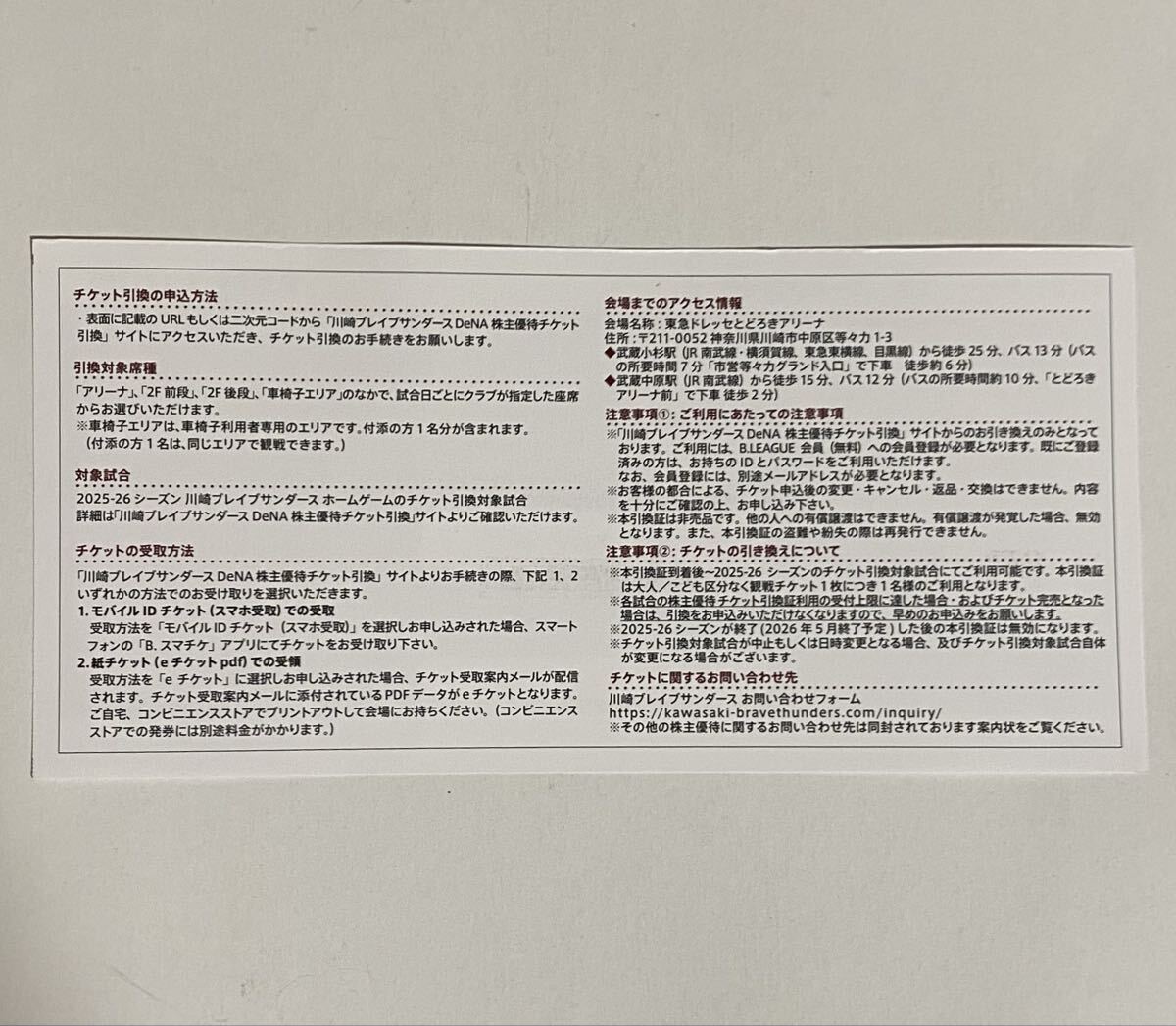 DeNA 株主優待の2025-26シーズン 川崎ブレイブサンダース チケット引換証になります。| 出价者 | 信用 | 价格 | 时间 |