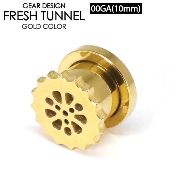 フレッシュトンネル ギア3-GD 00ゲージ(10ミリ) ゴールド カラーコーティング サージカルステンレス デザイン ボディーピアス ロブ 00G