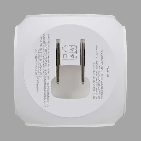 | 製品 | USB電源タップ AC3個口+USB-C×1ポート+USB-A×2ポート |