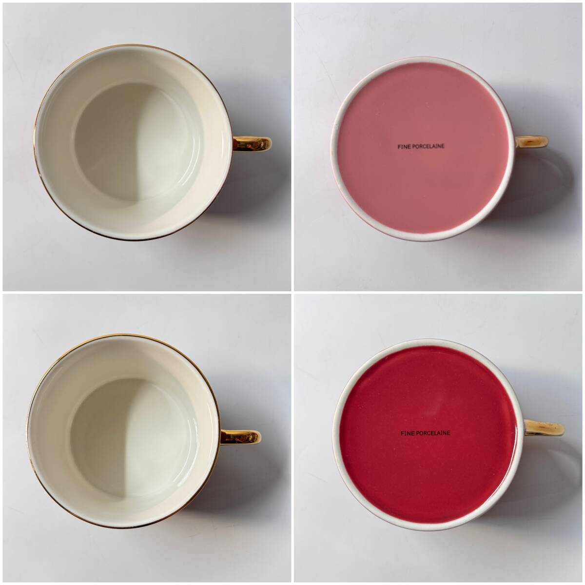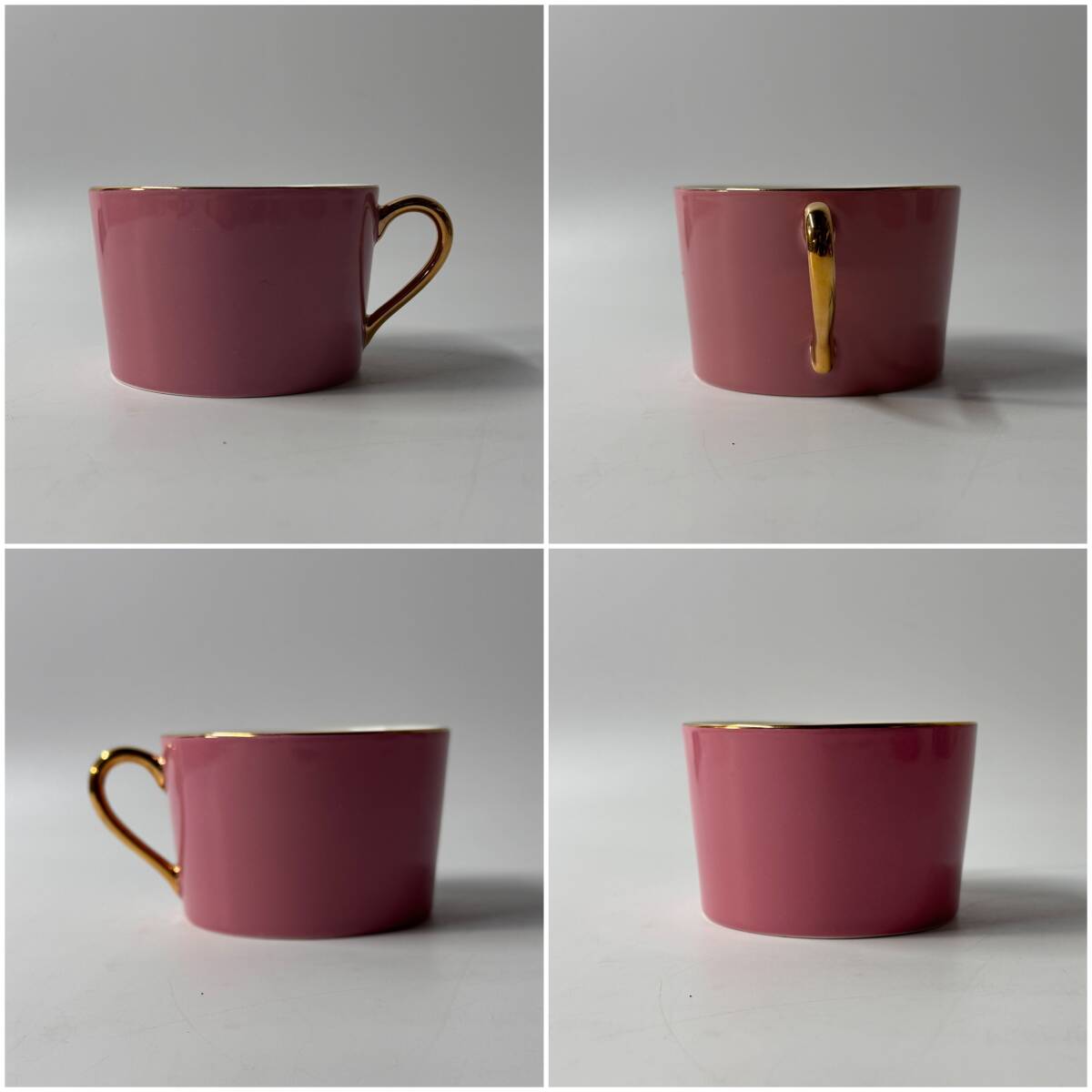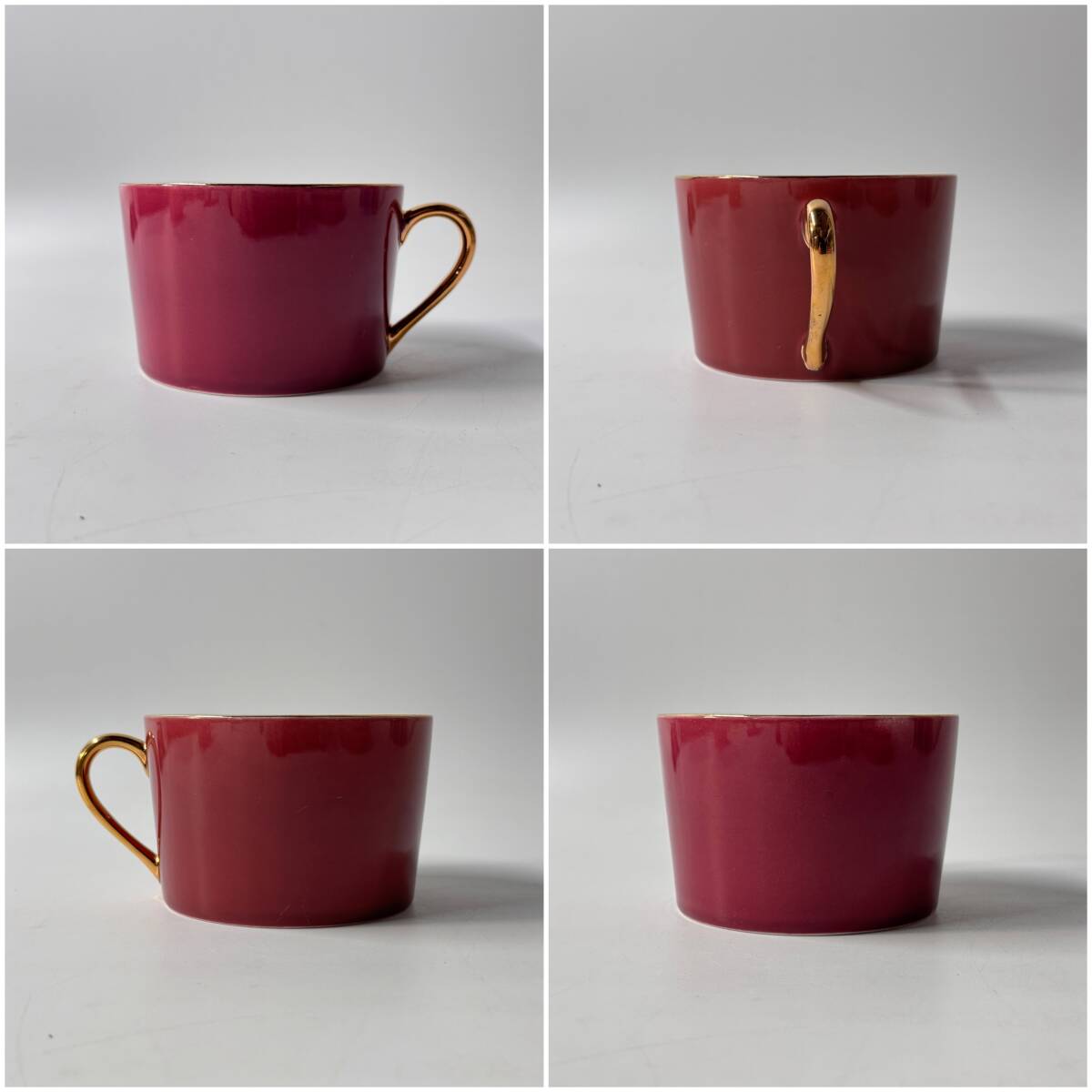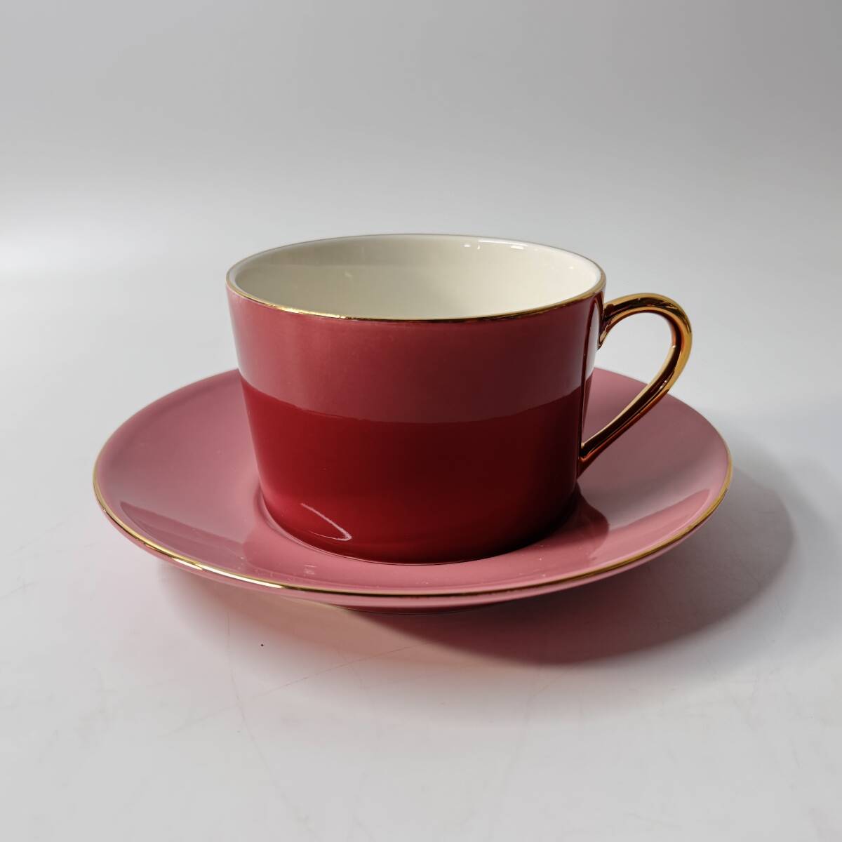 色の配色や形状は香蘭社や大倉陶園の製品に似たものが多く見られるようですが、通常のカップ&ソーサーよりも大きいサイズでカフェオレなどに使用されるサイズ感です。