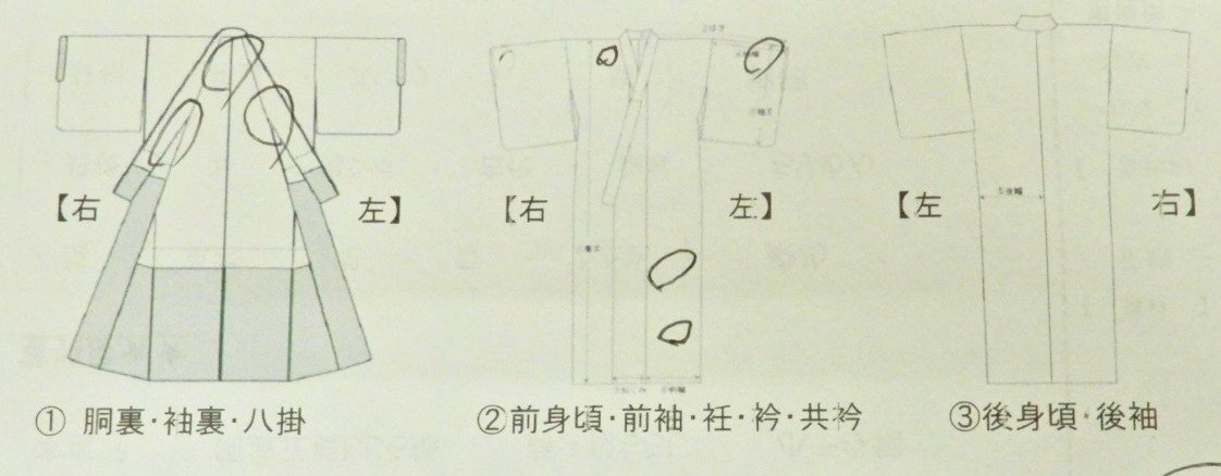 | ・身丈 154cm ・ゆき 62.5cm ・袖丈 48.5cm ・袖幅 32.5cm ・後幅 29cm ・前幅 23cm ・おくみ 15.5cm |